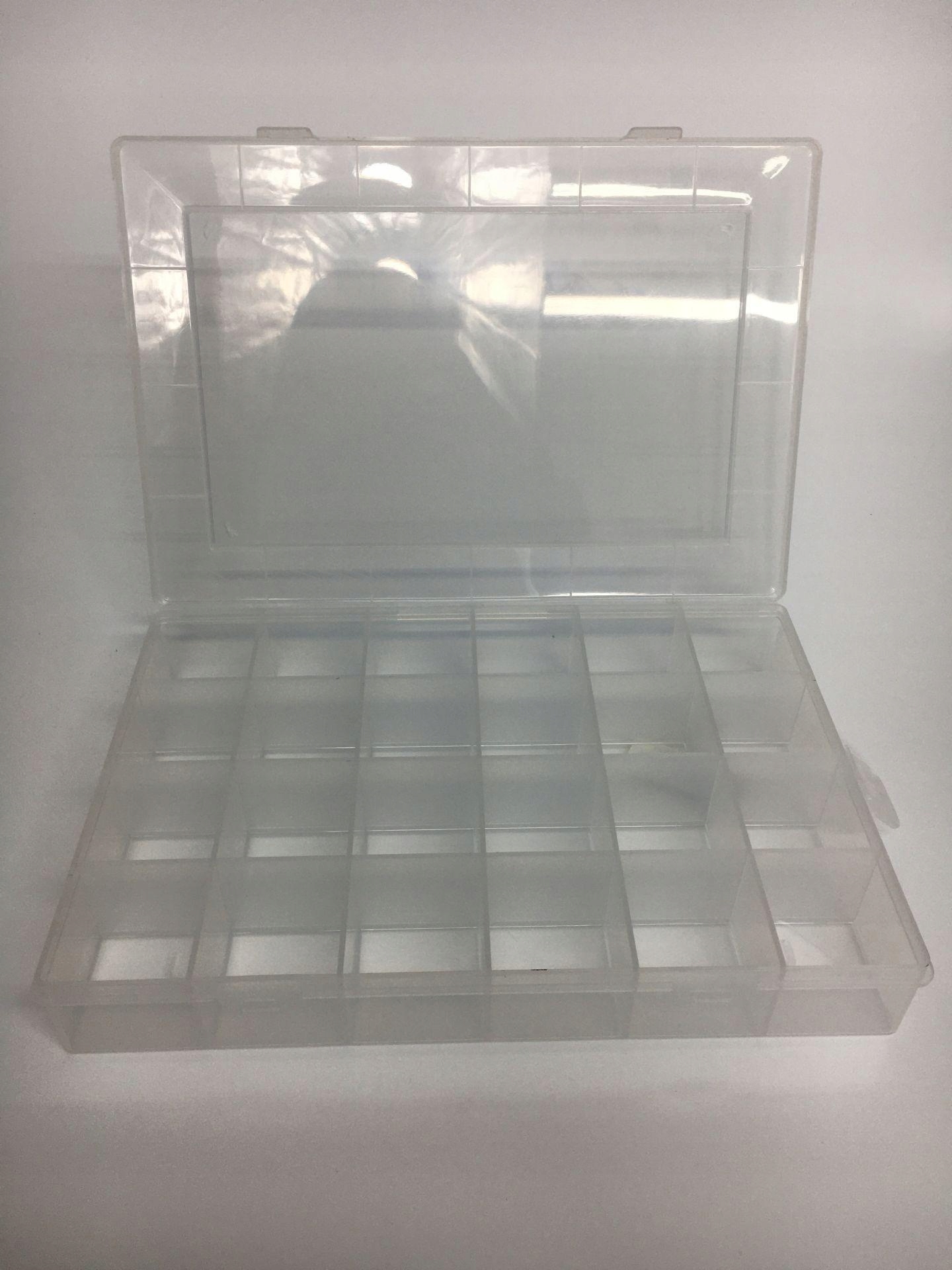 РАЗМЕРЫ: Ящик для мелких деталей имеет ширину 37,7 см, длину 23,3 см и высоту 5,8 см. Размеры отделения 5,3 х 5,3 х 4,6 см.