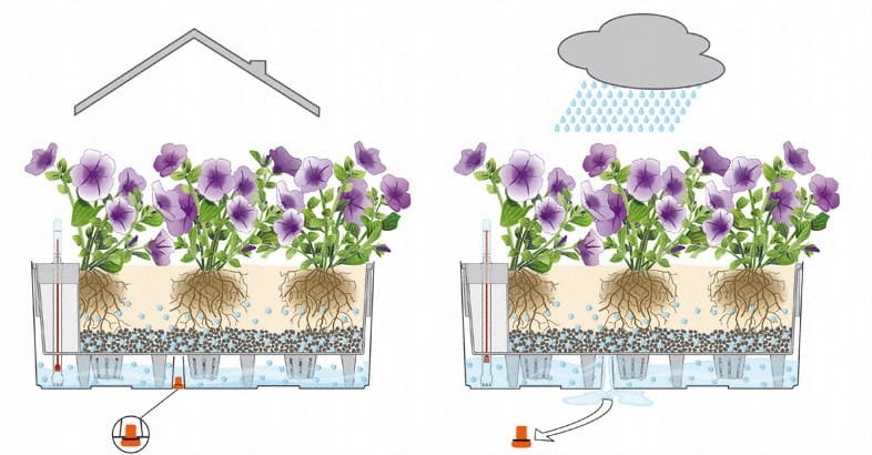 Внизу горшка имеется дренажное отверстие. с винтом , который можно открутить обычной монетой. Благодаря отверстию можно сливать лишнюю воду, образовавшуюся в результате перелива при поливе или обильных дождях.