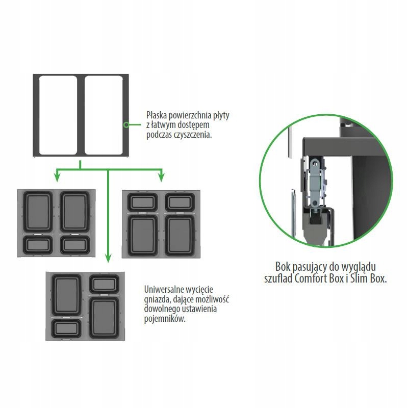 - Боковые части ящика визуально соответствуют системам Comfortbox и UltraBox Rejs.