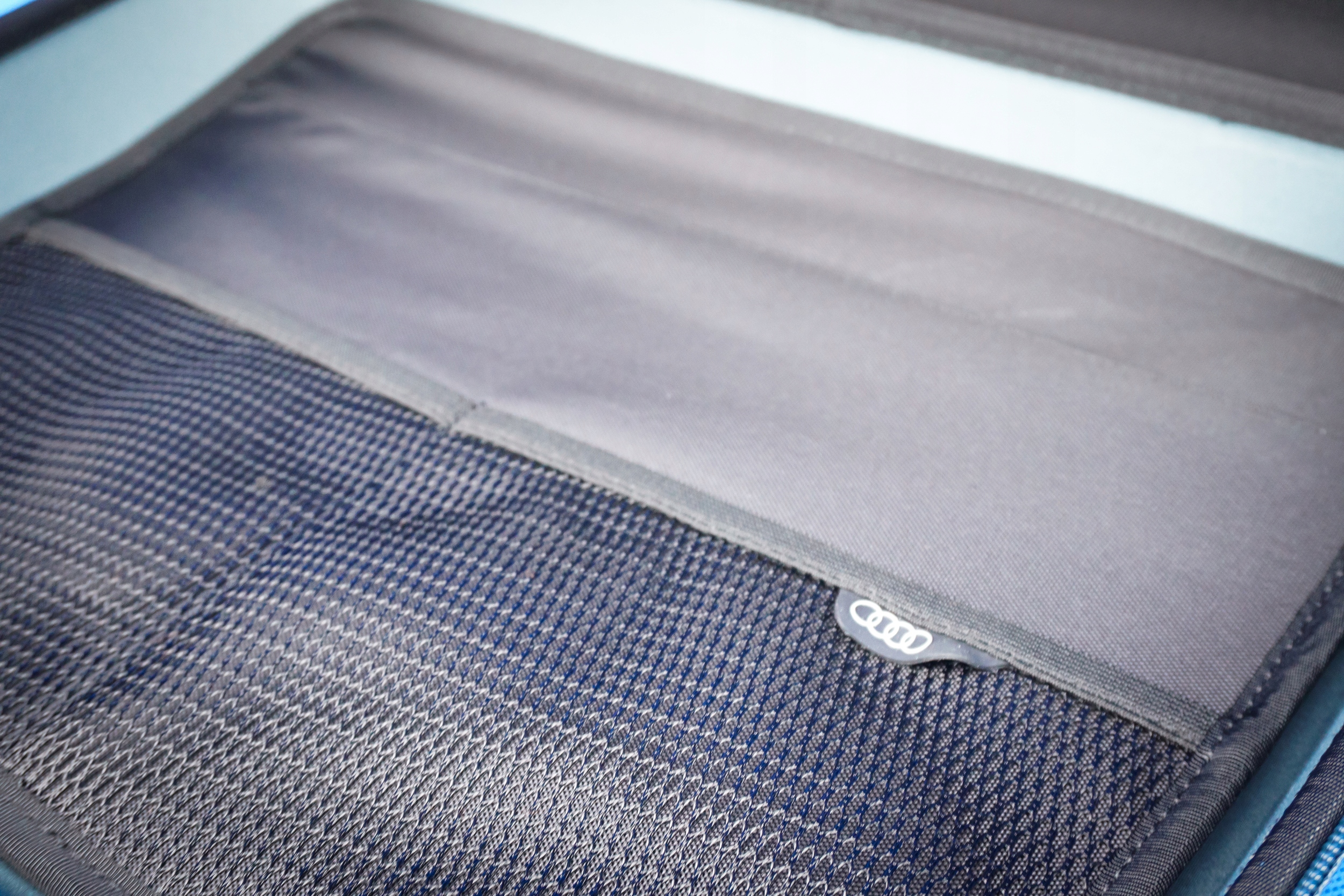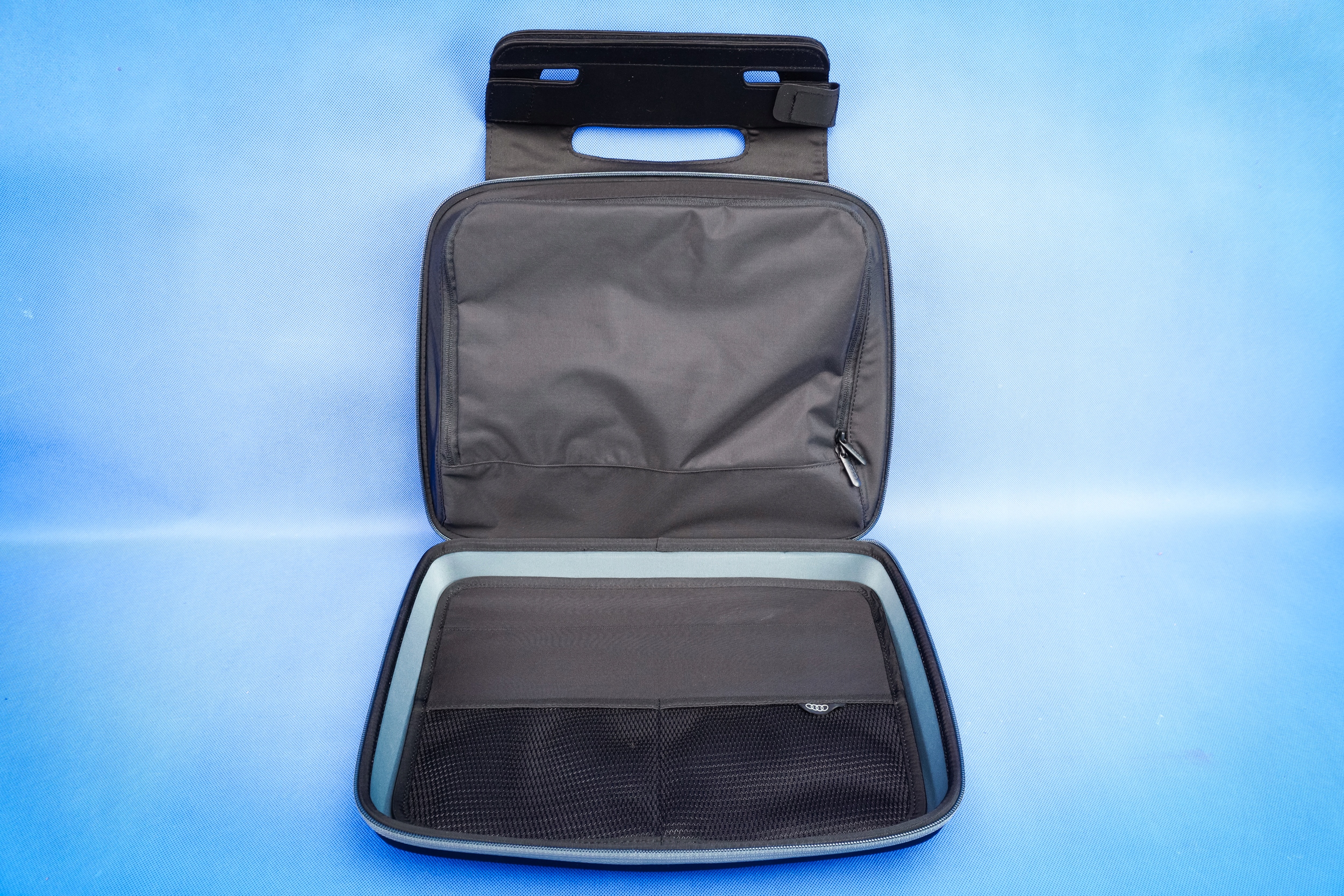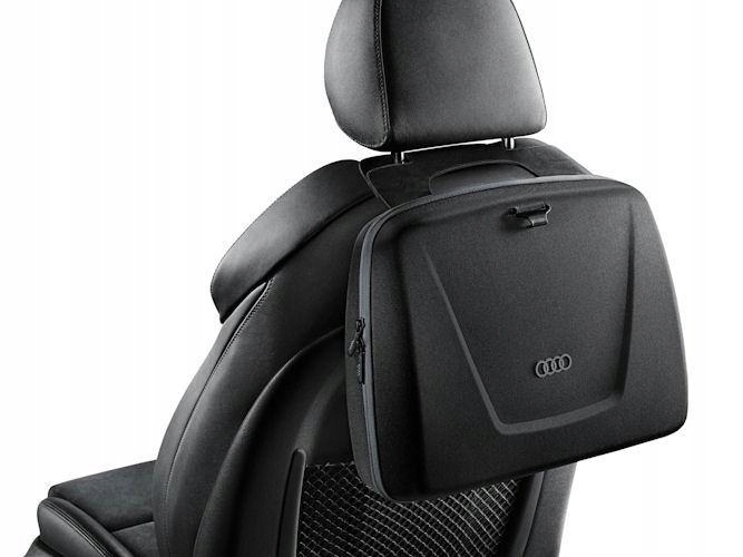 Сумка на спинку сиденья с различными отделениями предлагает дополнительное место для хранения вещей в элегантном стиле Audi и помогает поддерживать порядок в салоне. Сумка объемом примерно 11 литров крепится к спинке передних сидений, а также может использоваться вне автомобиля.