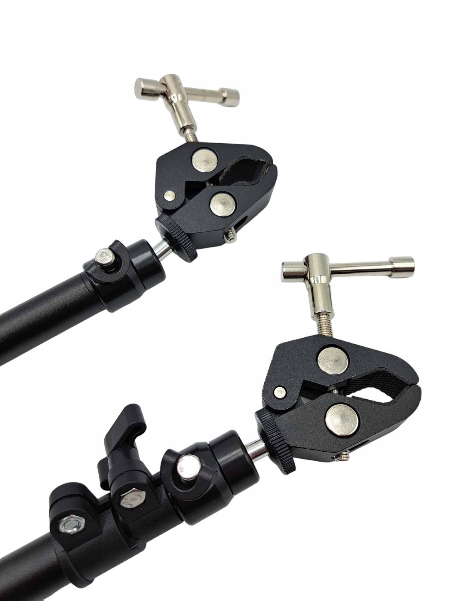 Нижние концы рычагов прикрепляются к ножки штатива, а верхние концы ввинчиваются в нижнюю часть ползунка. На концах ножек рычаги имеют зажим на мини-шаровой головке. Сверху они имеют мини-шаровую головку с диаметром 1/4 дюйма. 20, который вкручивается в нижнюю часть удерживающих ползунков.