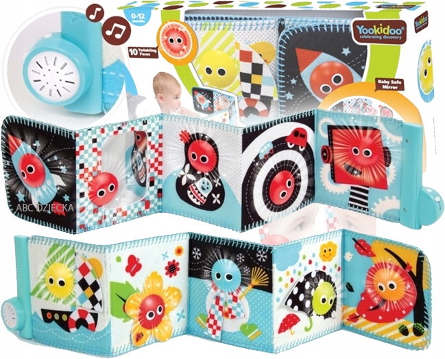 Двусторонняя Музыкальная книга с лампочками рассчитана на три этапа развития ребенка: новорожденный (лежа на спине) и младенческий (лежа на животе и сидячий этап). Красочная страница нотной книжки украшена мотивом четырех времен года, черно-бело-красная страница имеет четкие геометрические формы и контрастные цвета, которые идеально подходят для первого этапа развития, когда зрение ребенка еще не полностью сформировано. развито, и зрение малыша размыто. Книга Юкиду также включает в себя звуки и свет. Музыкальное панно играет две классические мелодии Шопена и Хейдена. Дружелюбные лица загораются одно за другим, побуждая малыша следить за ними глазами и поворачивать голову из стороны в сторону. Кроме того, различные текстуры и материалы способствуют сенсорному развитию ребенка. Мы можем использовать нотную книгу в люльке, коляске или положить ее на коврик отдельно. Складывается гармошкой, легко переносится – удобно упаковать в сумку или коляску.