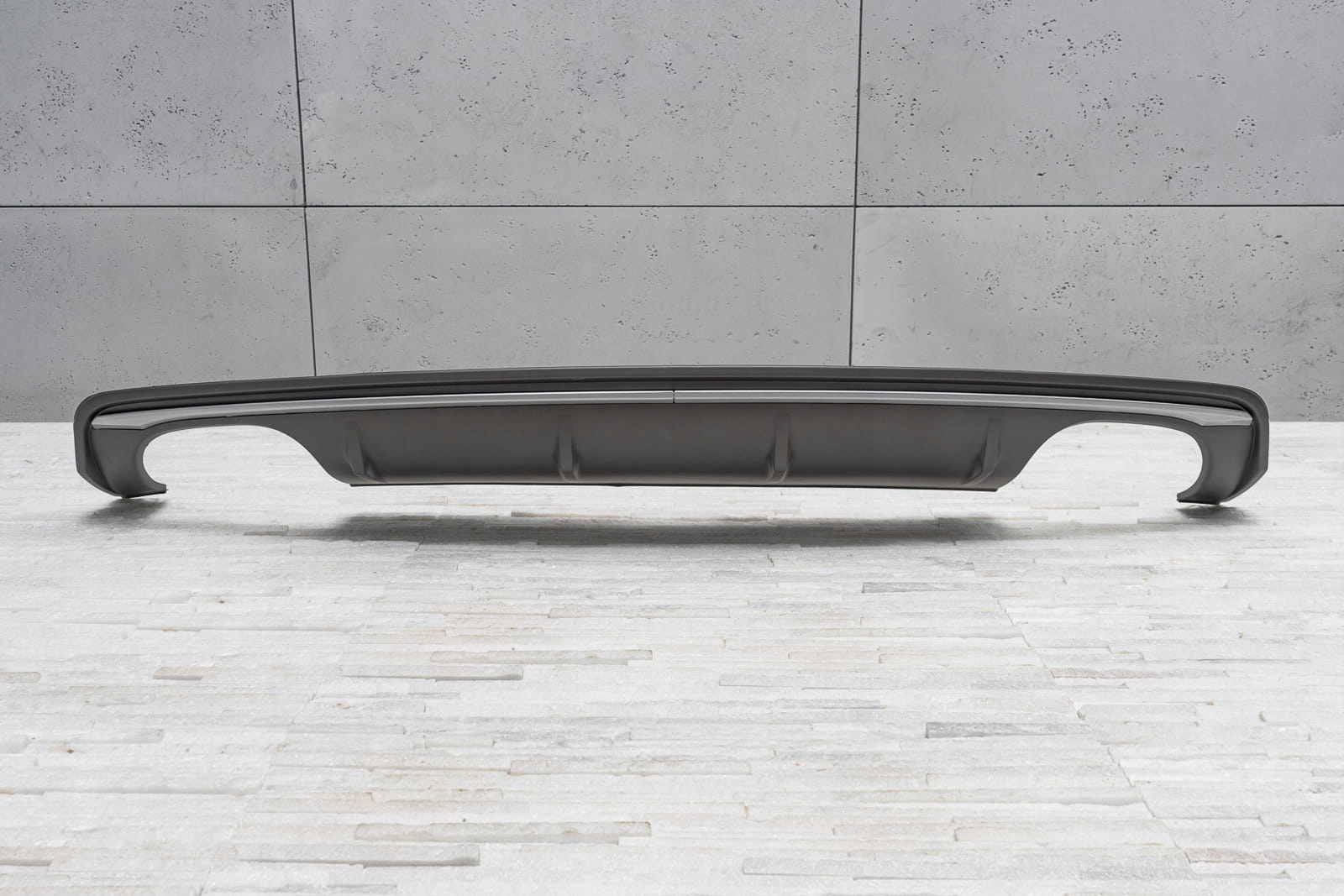 Пространство для характерного двойного выхлопа позволяет добиться стиля Audi A3 в версии S3. б> Диффузор был разработан так, чтобы идеально сочетаться с другими элементами отделки, дополняя динамичный и спортивный характер вашего автомобиля. Помимо визуальных преимуществ, диффузор улучшает аэродинамику автомобиля и снижает шум воздуха, проходящего под автомобилем. Изделие изготовлено из высококачественного автомобильного АБС-пластика антрацитового цвета. Настоящим украшением диффузора является серебристая полоска, привлекающая внимание и подчеркивающая выхлоп нашей машины. В комплект входят элементы крепления. Диффузор является запчастью, совместимой с местом крепления в заднем бампере автомобиля. Для установки элемента. вам необходимо снять губу бампера, а затем заменить ее диффузором для укладки.