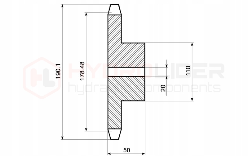 Закрашенная цепная передача 22 "зубы 1" для цепи 16B-1