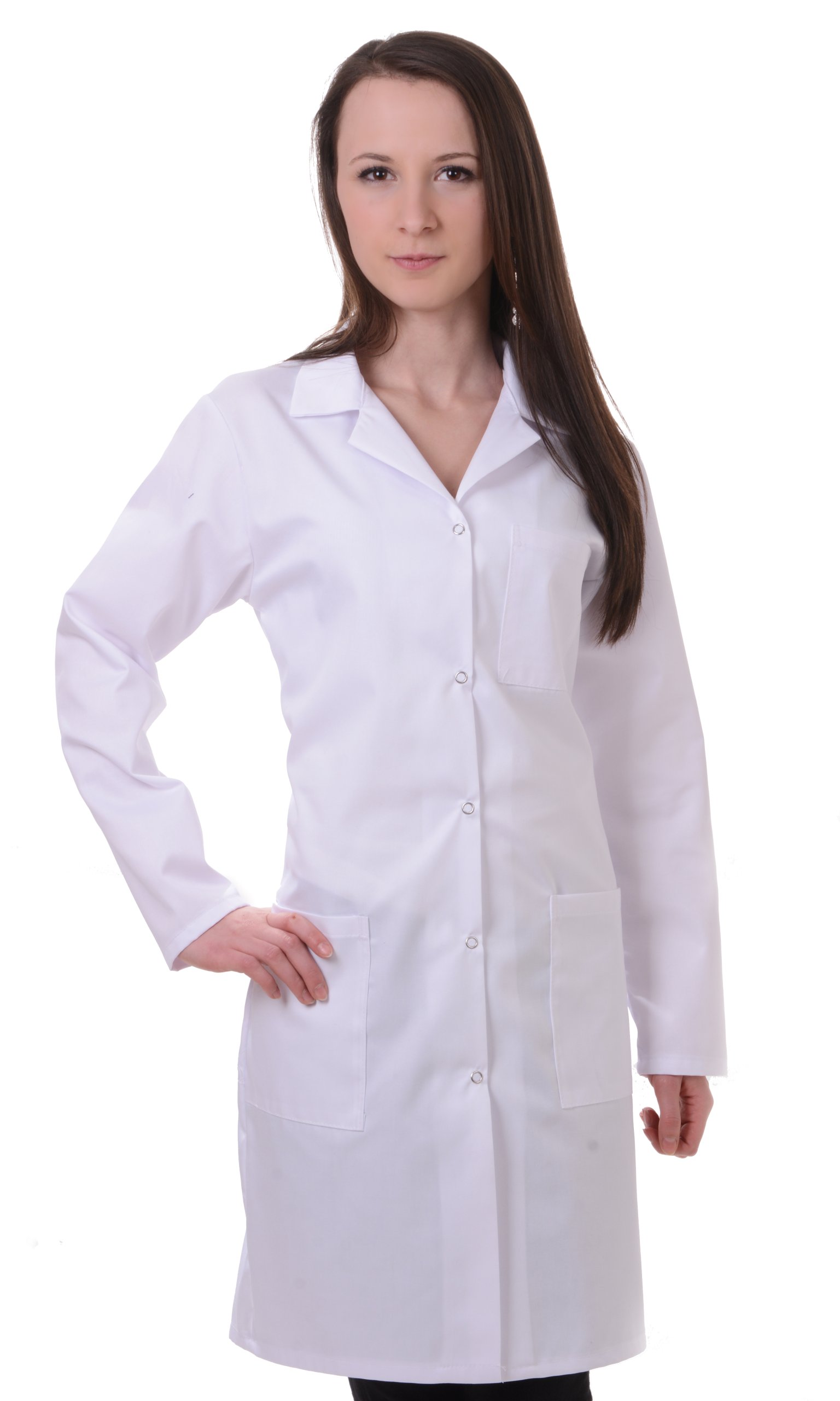 Фартук женский из хлопка, используется на лабораторных занятиях и гастрономии.