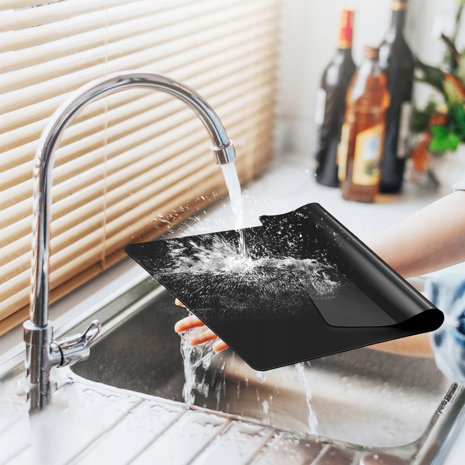 ★ Легко чистить: коврик гибкий и прочный, его можно очистить водой. Если есть много пятен масла, вы можете использовать посудомоечную машину, которая погружается в небольшое количество чистящего средства, чтобы тщательно чистить или мыть в посудомоечной машине.