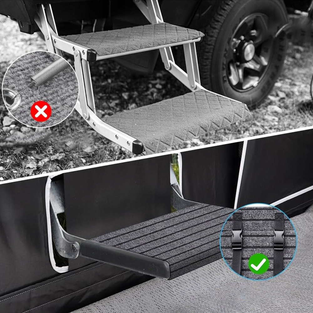 🚐 【Универсальное использование 】: уникальная структура зажима позволяет быстро и легко демонтировать и сборку. Идеально подходит для туристов с шириной 18-26 см (не подходит для многоуровневой электрической лестницы).