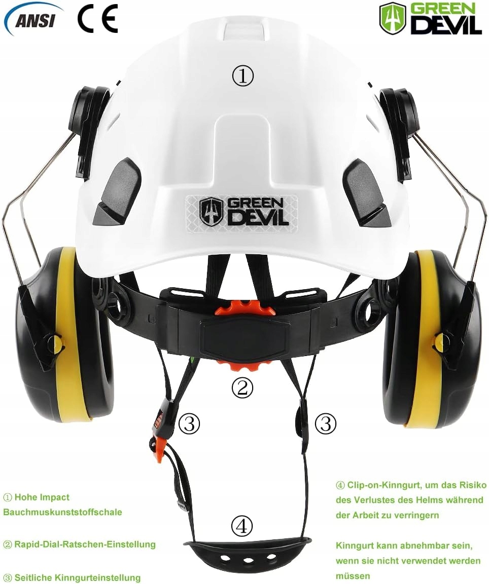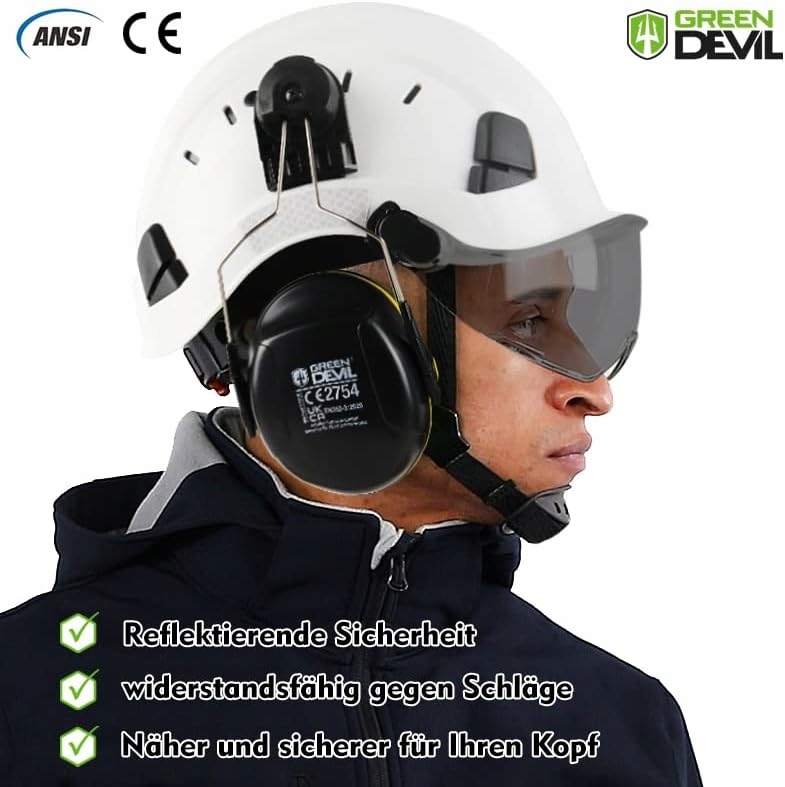 Green Devil Mervex Vent Helmet - это современное решение для защиты головы для промышленных, лесных, строительных и высотных применений. Он сочетает в себе три элемента: жесткая оболочка с ABS, складной видоискатель и съемные защитники слуха. Обеспечивает комфорт, безопасность и практичность в одном наборе.