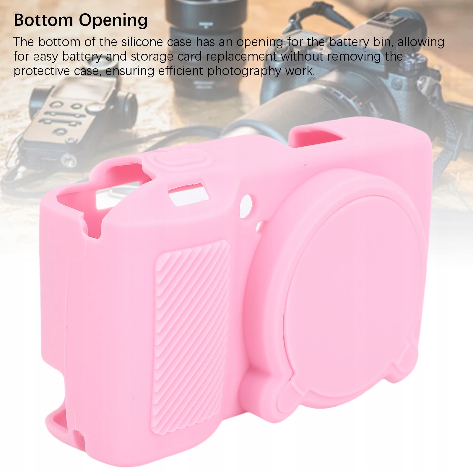 2. Нижнее отверстие: нижняя часть корпуса силикона имеет отверстие для контейнера для батареи, что позволяет заменить батарею и карту памяти без удаления защитного корпуса, обеспечивая эффективные фотографии.