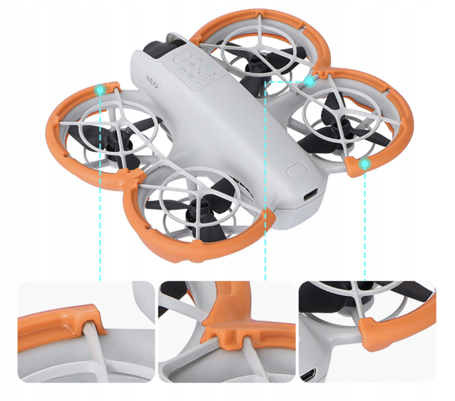 Щиты изготовлены из долговечного, характеризующегося высоким ударом и в то же время легкий, пластик TPE. обложки не обременяют беспилотник, их общий вес составляет всего 10 г. Они не оказывают негативного влияния на контроль и рабочее время - бегство беспилотника