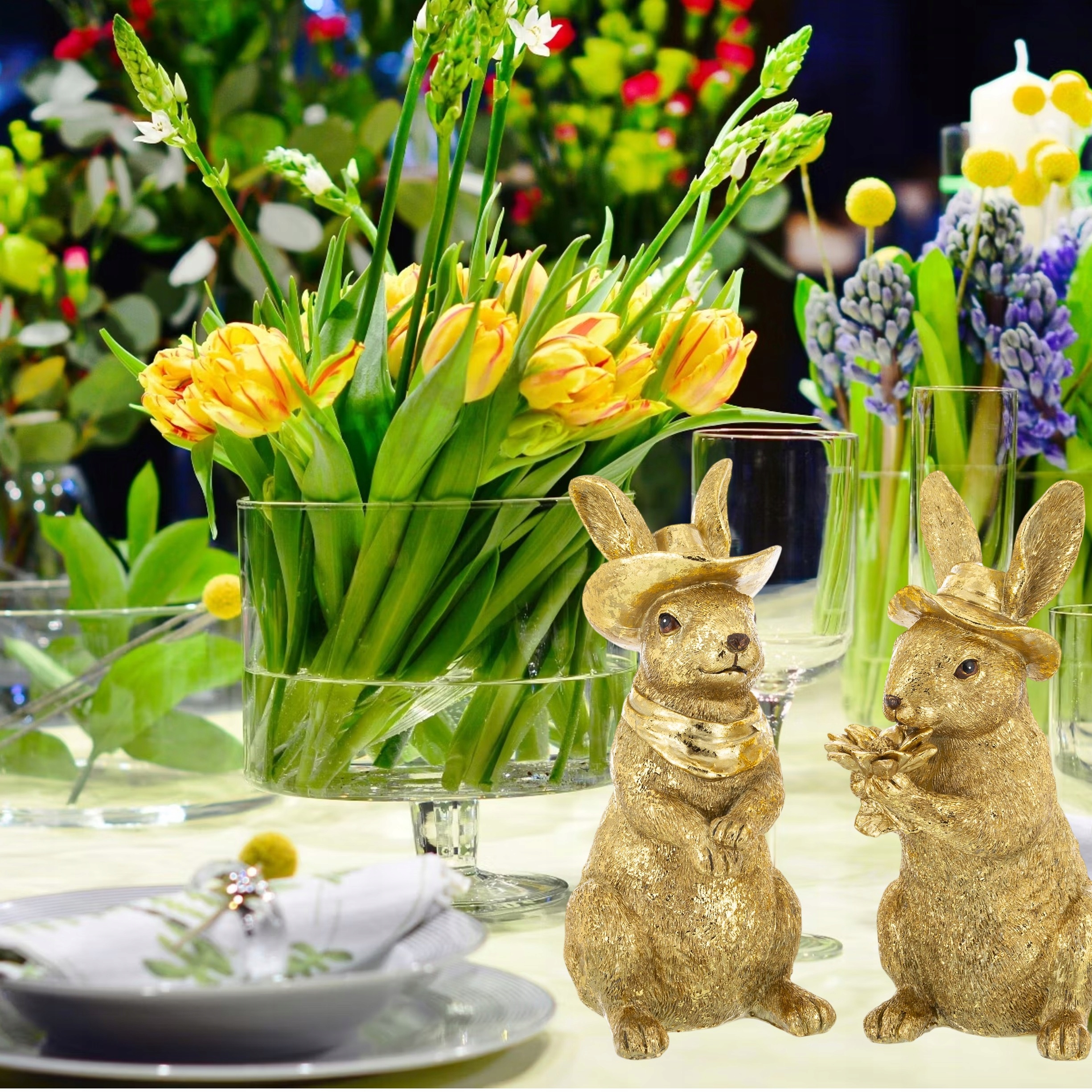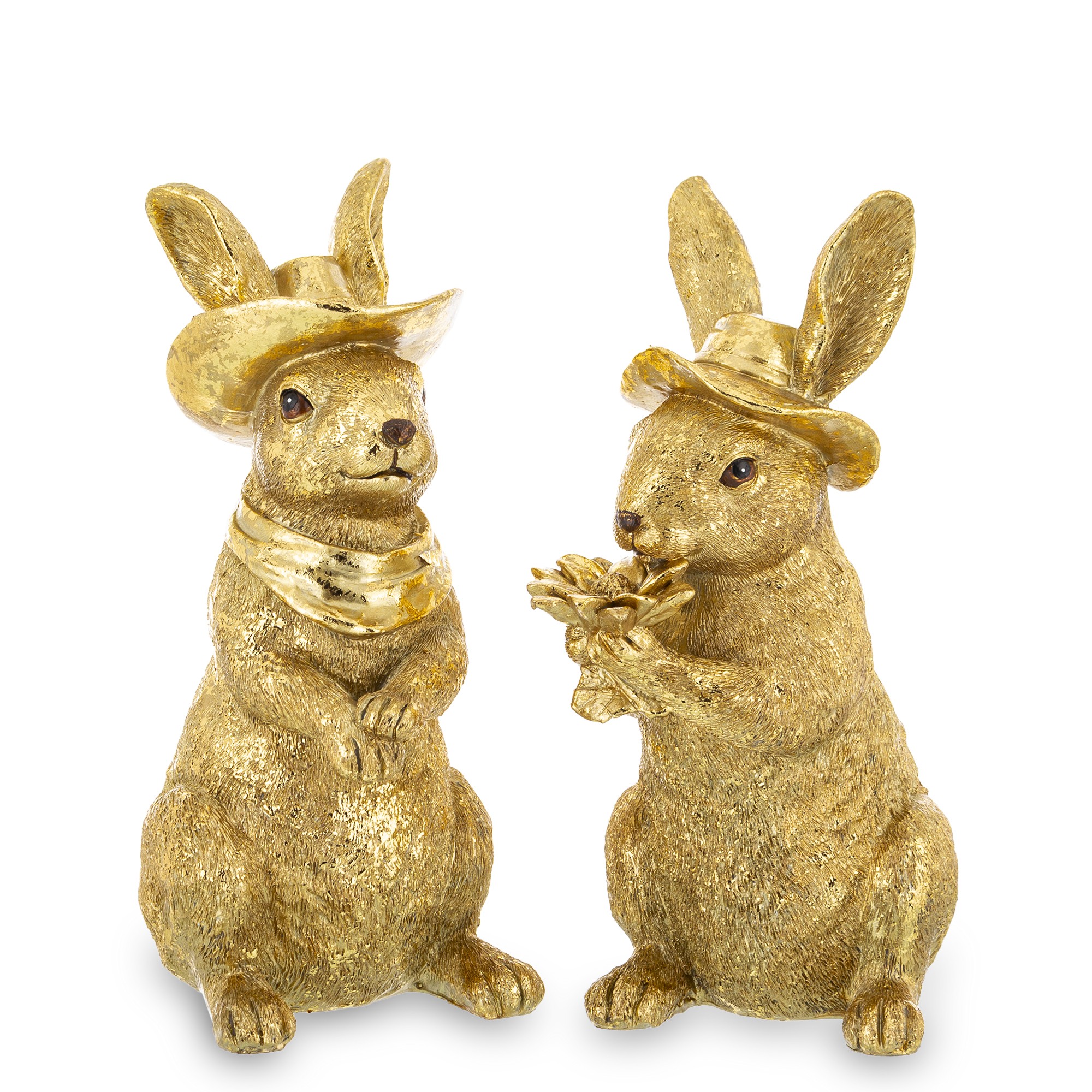 Кроличья статуэтка кролика в шляпе золото 21 см Пасхальное украшение