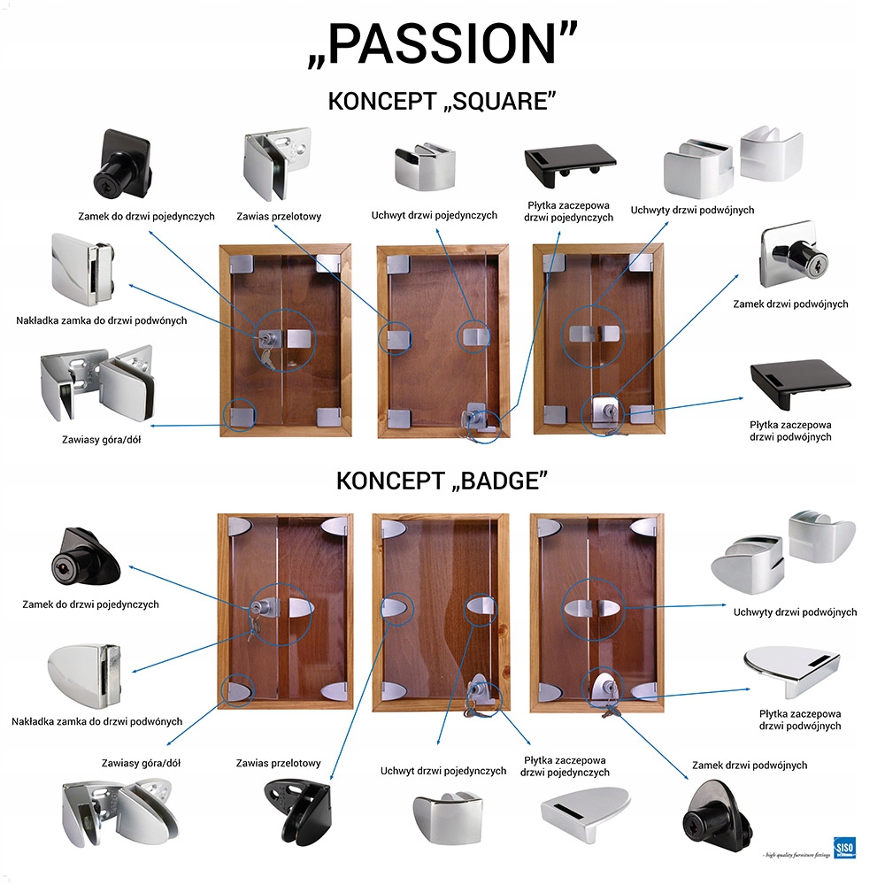 Passion — две линии фурнитуры для изготовления витрин или мебели со стеклянными дверцами.