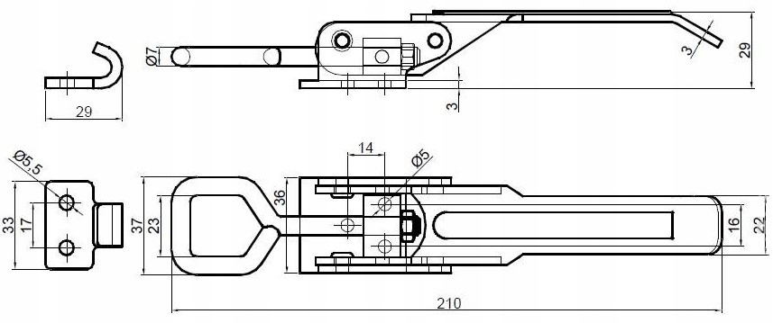 Замок Закрытие Боковая защелка Регулируемая 210x37