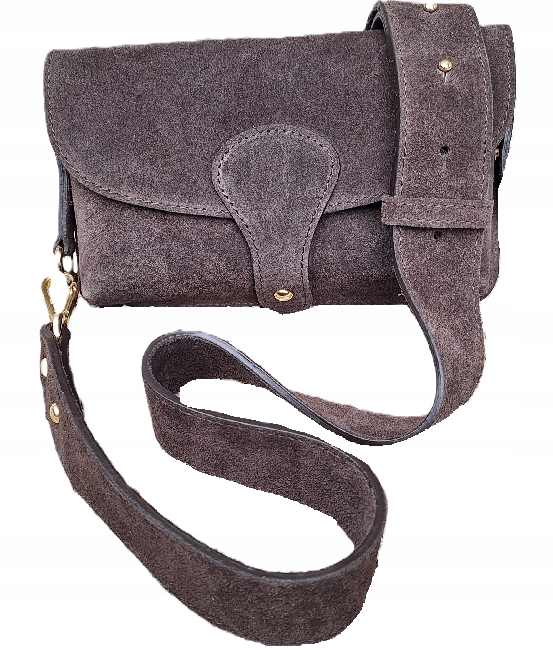 Замшева італійська сумочка ШОКОЛАДНА нирка листоноша ВЕЛИКА ВЕРСІЯ