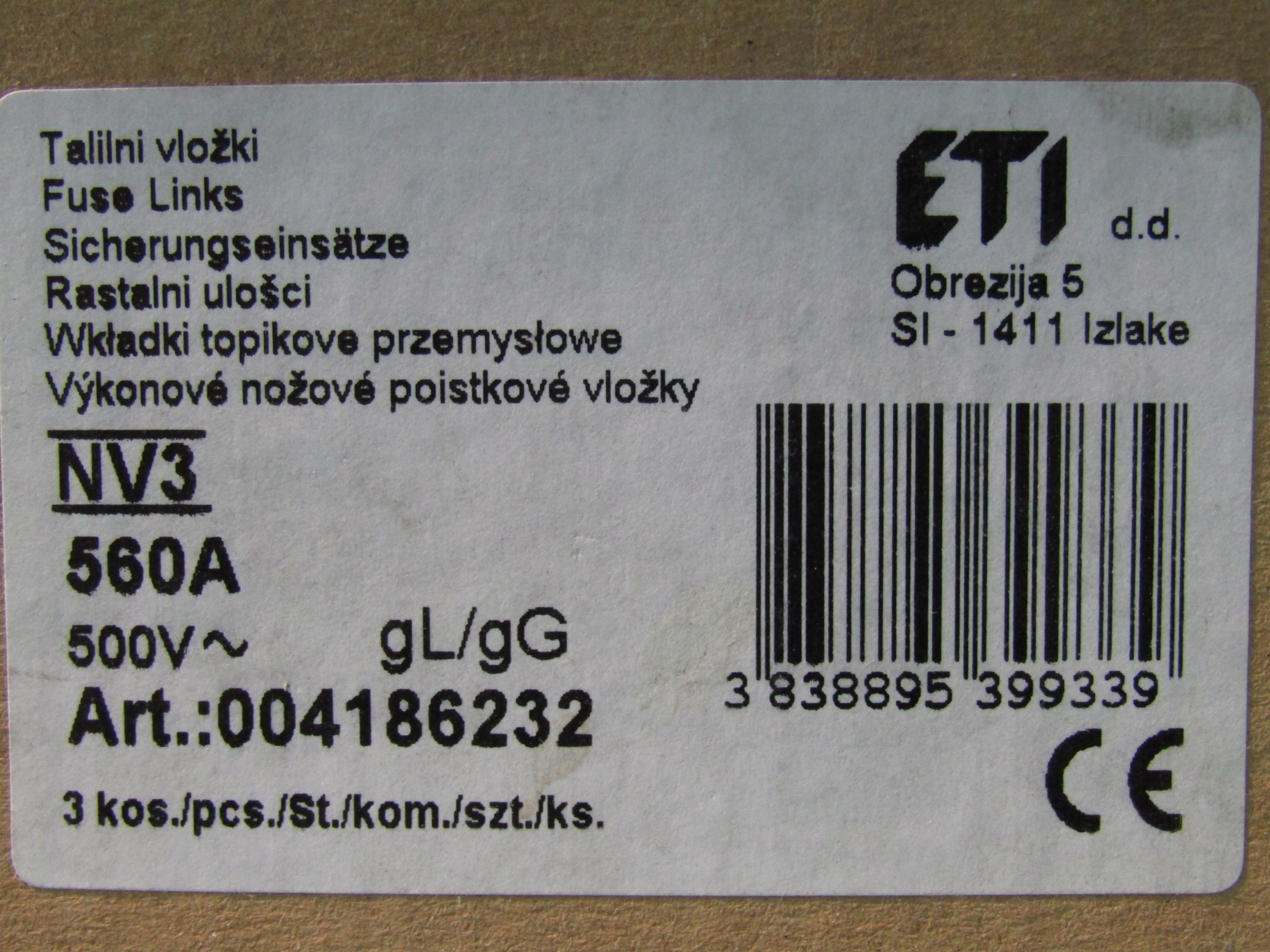 ЗАПОБІЖНИК 560A 500V NH3 gL/gG