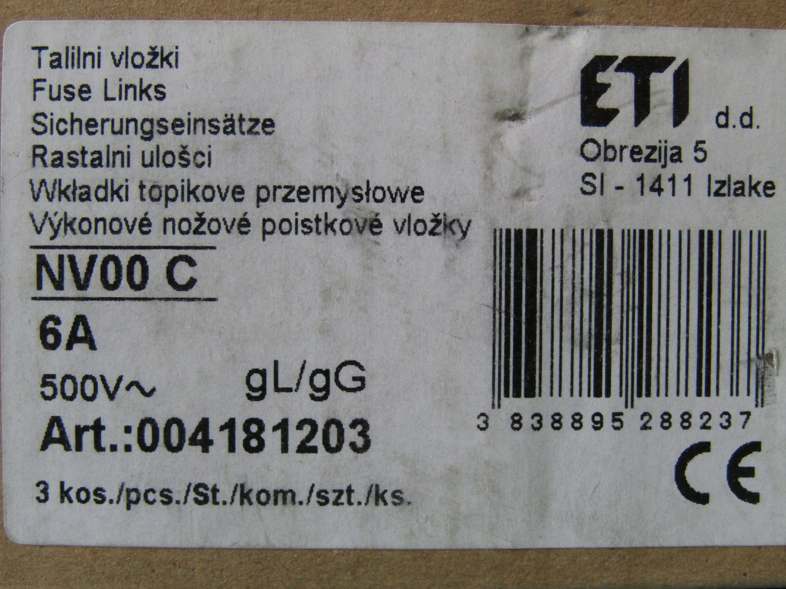 ЗАПОБІЖНИК З НОЖЕВОЮ ВСТАВКОЮ 6A 500V NV00 C gL/gG