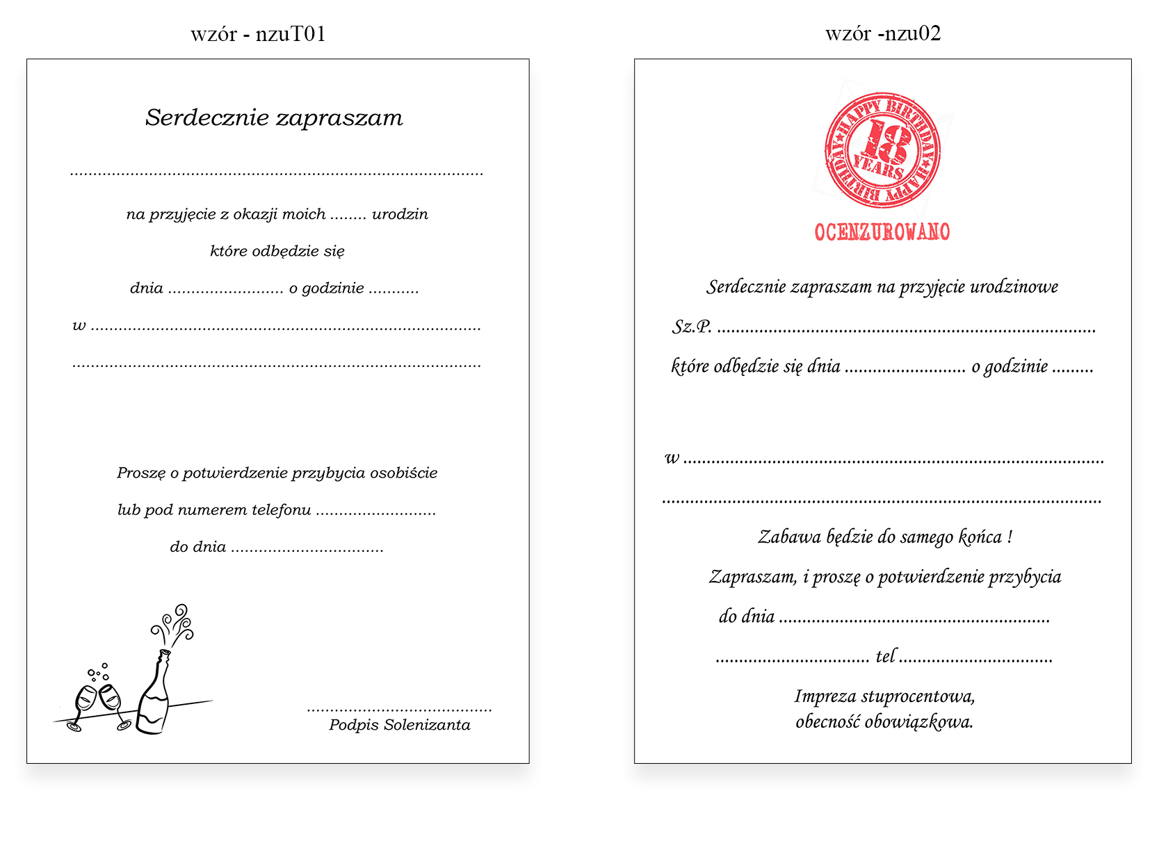 Приглашения могут быть адаптированы к каждому дню рождения, например, 18, 30, 40, 50, 60, 70, 80 дней рождения :)