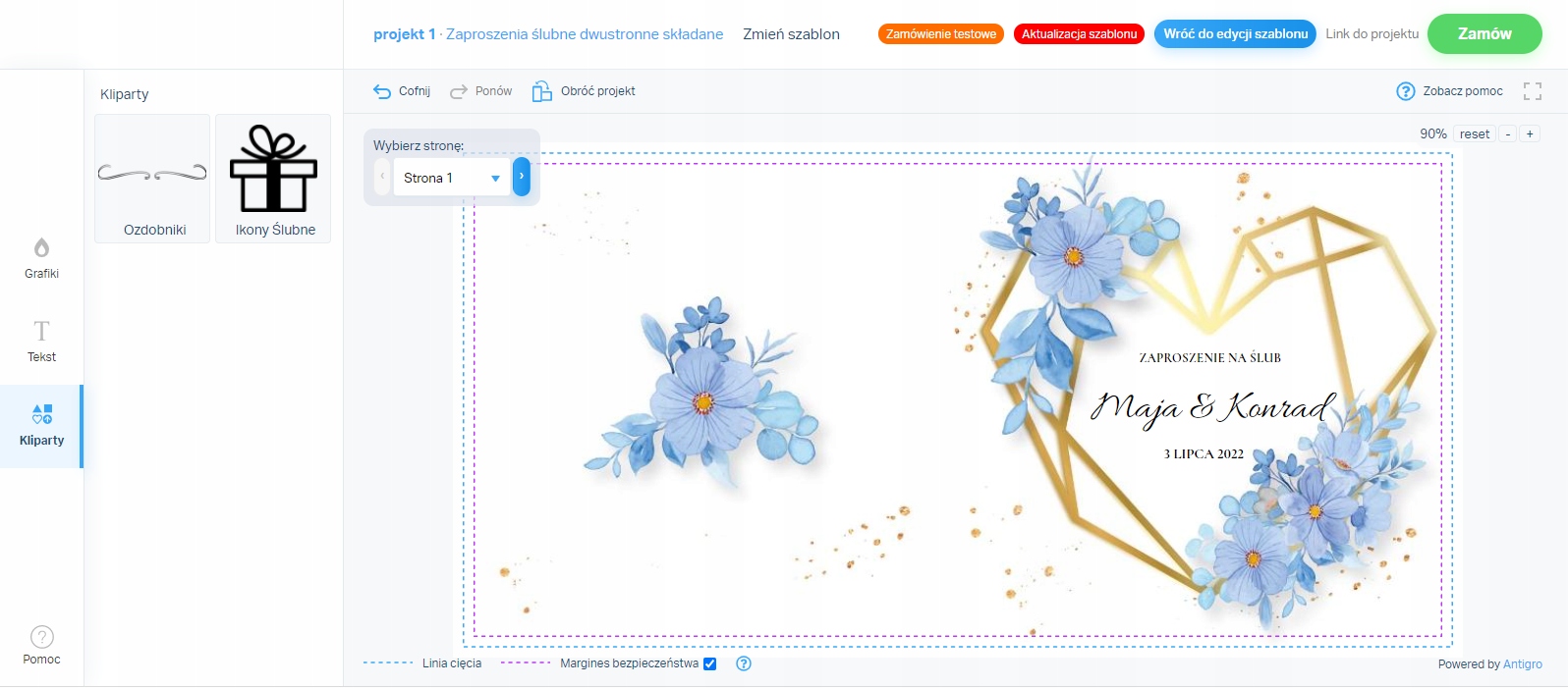 У вас есть доступ к мастеру перед покупкой, проверьте себя-> https://designer.antigro.com/pl/init/drukui-invitation-wedding-350g-kolekcja_002