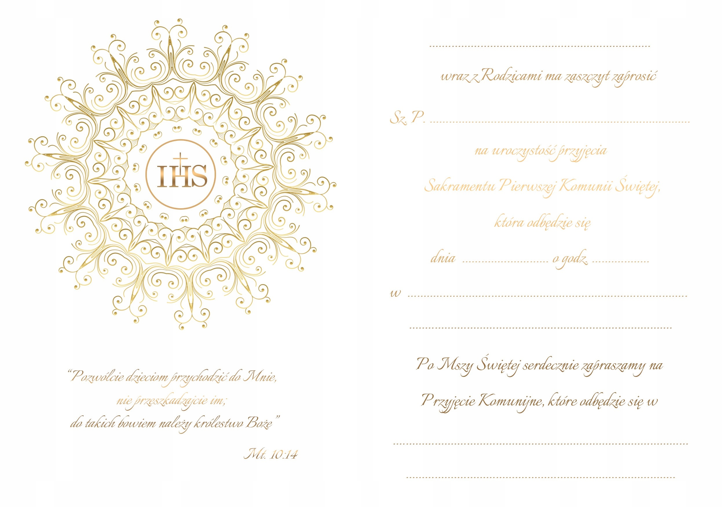 приглашение на причастие, сделанное на белой бумаге с золотыми аксессуарами
