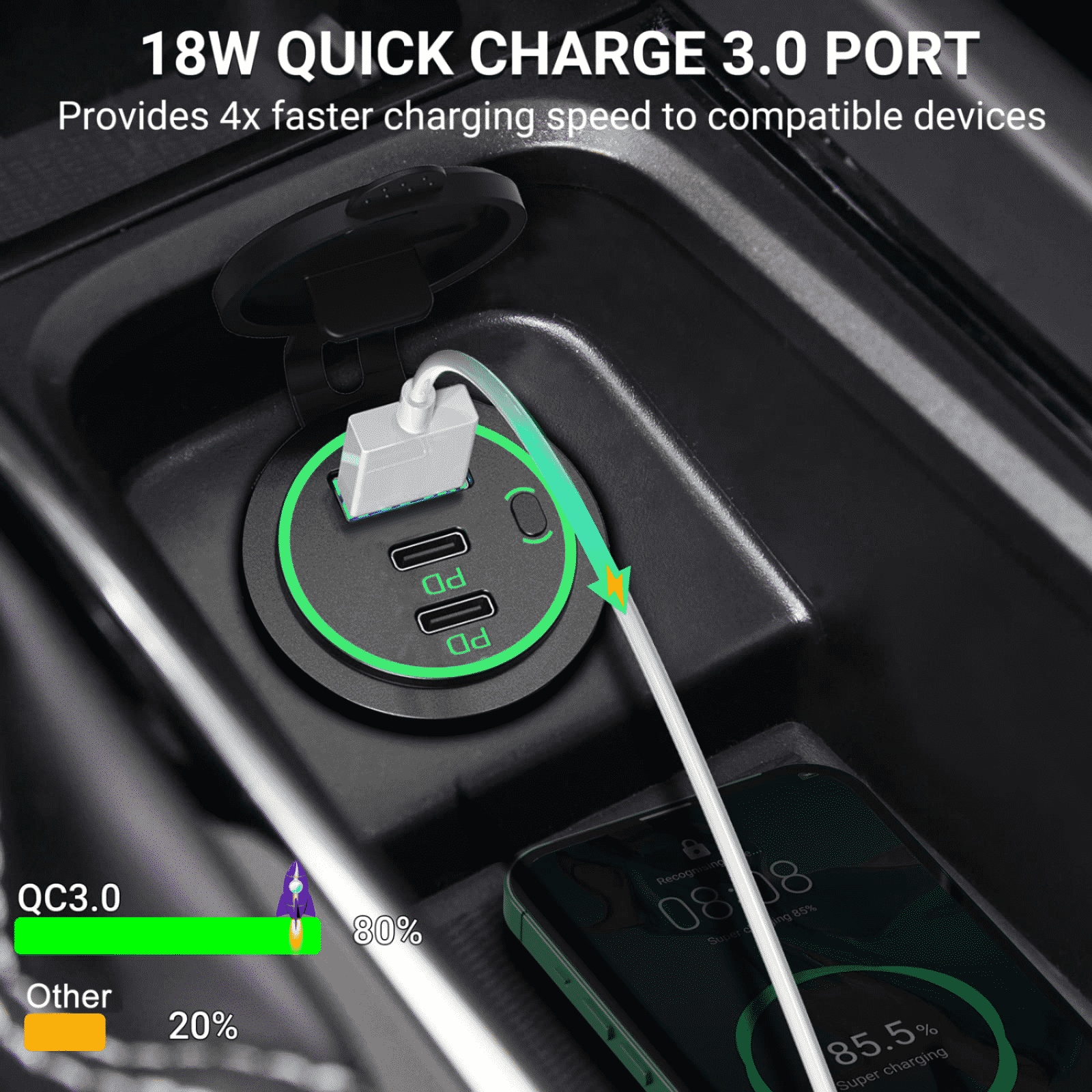 Этот 12 -V USB -зарядный сокет оснащен интеллектуальным чипом. Три порта могут быть быстро заряжены одновременно, не затрагивая друг друга. В случае автомобиля 24 В, общая мощность может достигать 78 дюймов