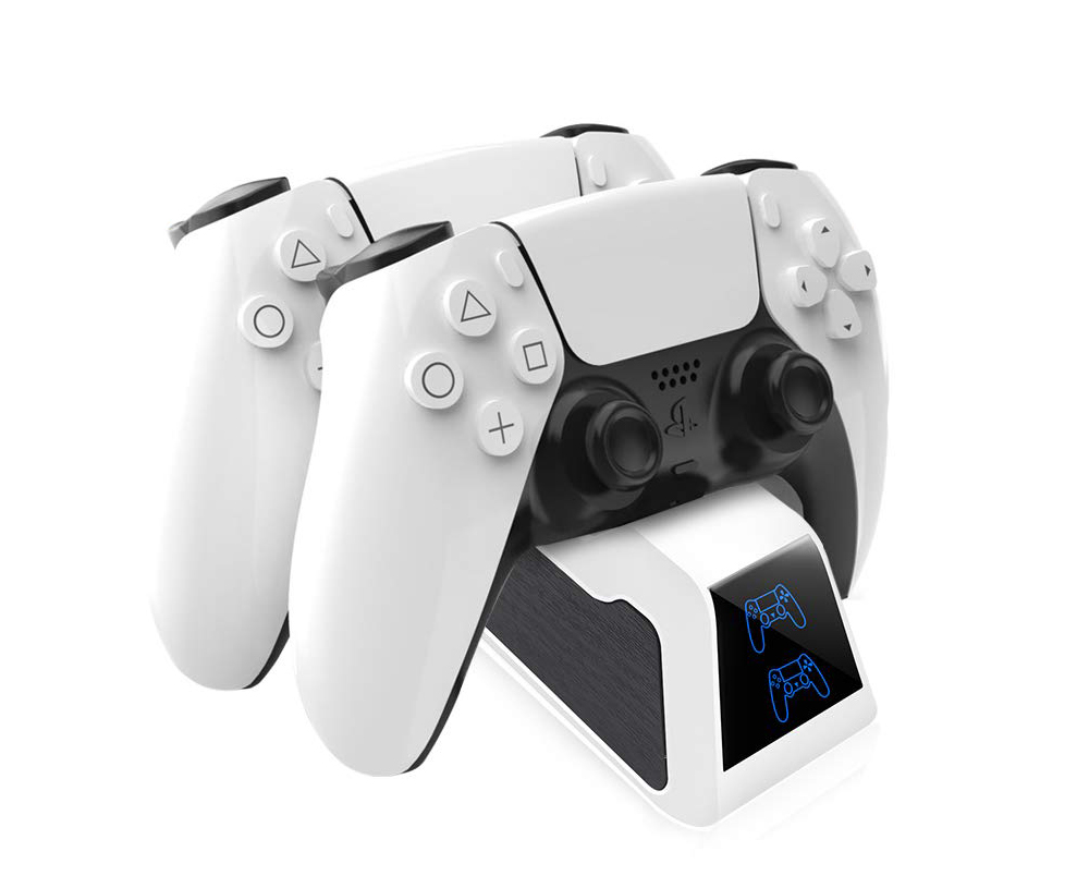 - Поддерживает одновременную зарядку 2 контроллеров PS5, а также может использоваться в качестве держателя контроллера.