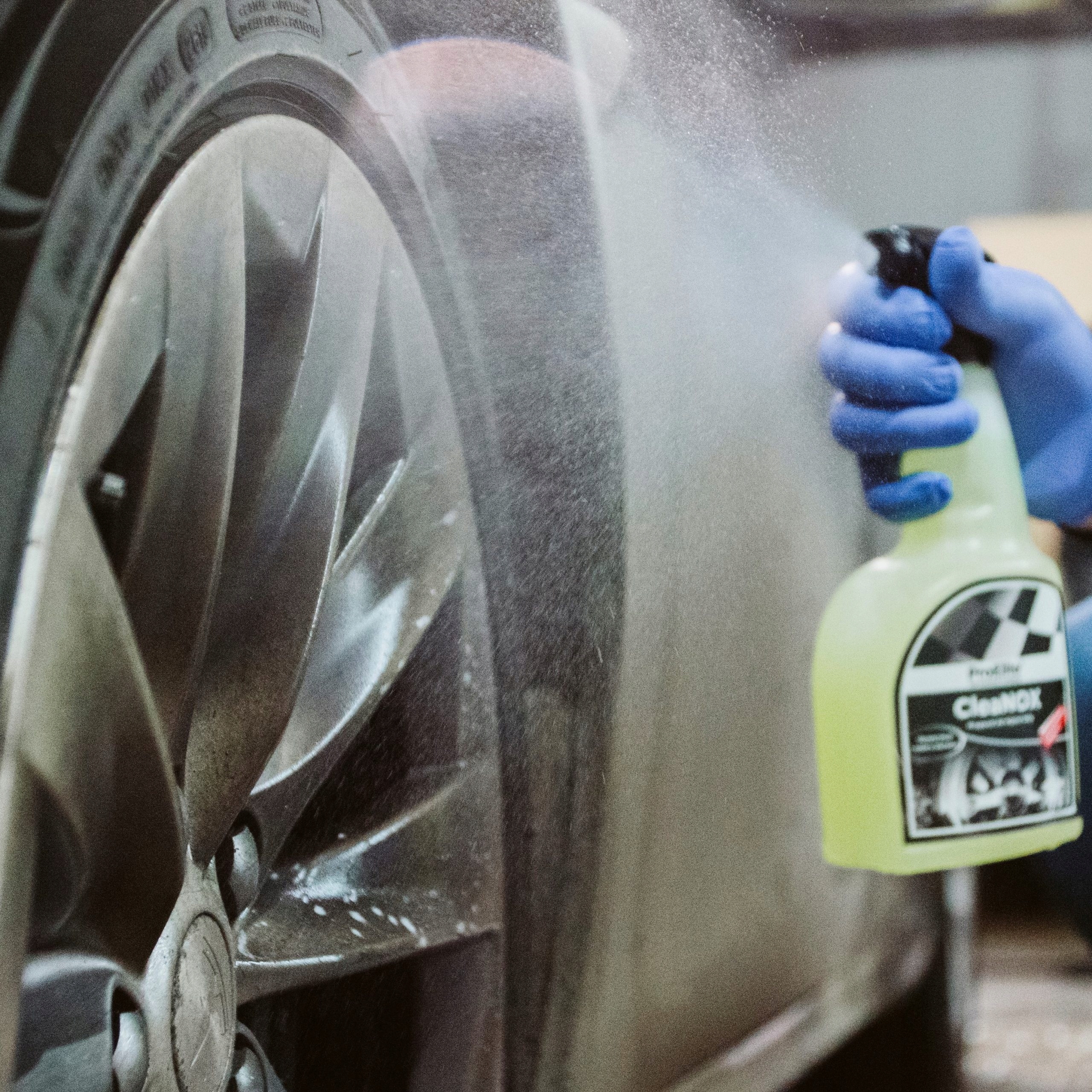 Использование очень удобного флакона с распылителем с жидкостным ободом делает его применение чрезвычайно простым. Поэтому весь процесс использования CleaNOX – детская игра! Сначала опрыскайте готовым препаратом весь обод. Стоит обратить внимание на труднодоступные места и укромные уголки. При очень сильном загрязнении рекомендуется использовать большее количество жидкости и мягкую щетку или ткань. Важно, чтобы продукт использовался на крутых дисках!