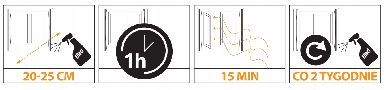 Препарат лучше всего наносить на стеклянные или деревянные поверхности в количестве 500 мл на 50 м² или 10 мл на 1 м² (около 10 нажатий распылителя).