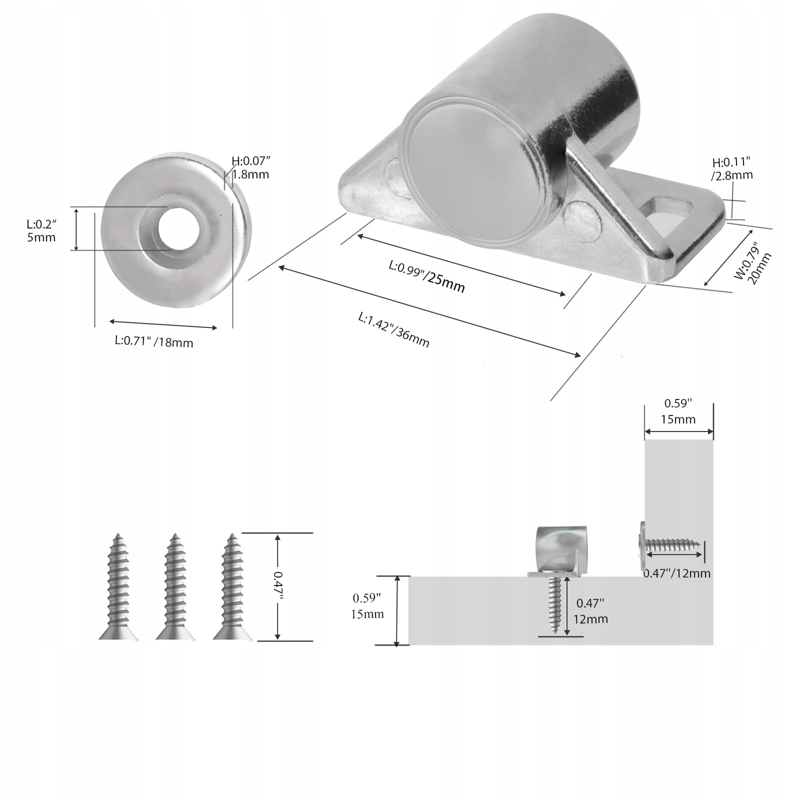 - Размер основания магнитной защелки: 36 x 15 мм/1,42 дюйма. x 0,59 дюйма (Д x Ш)