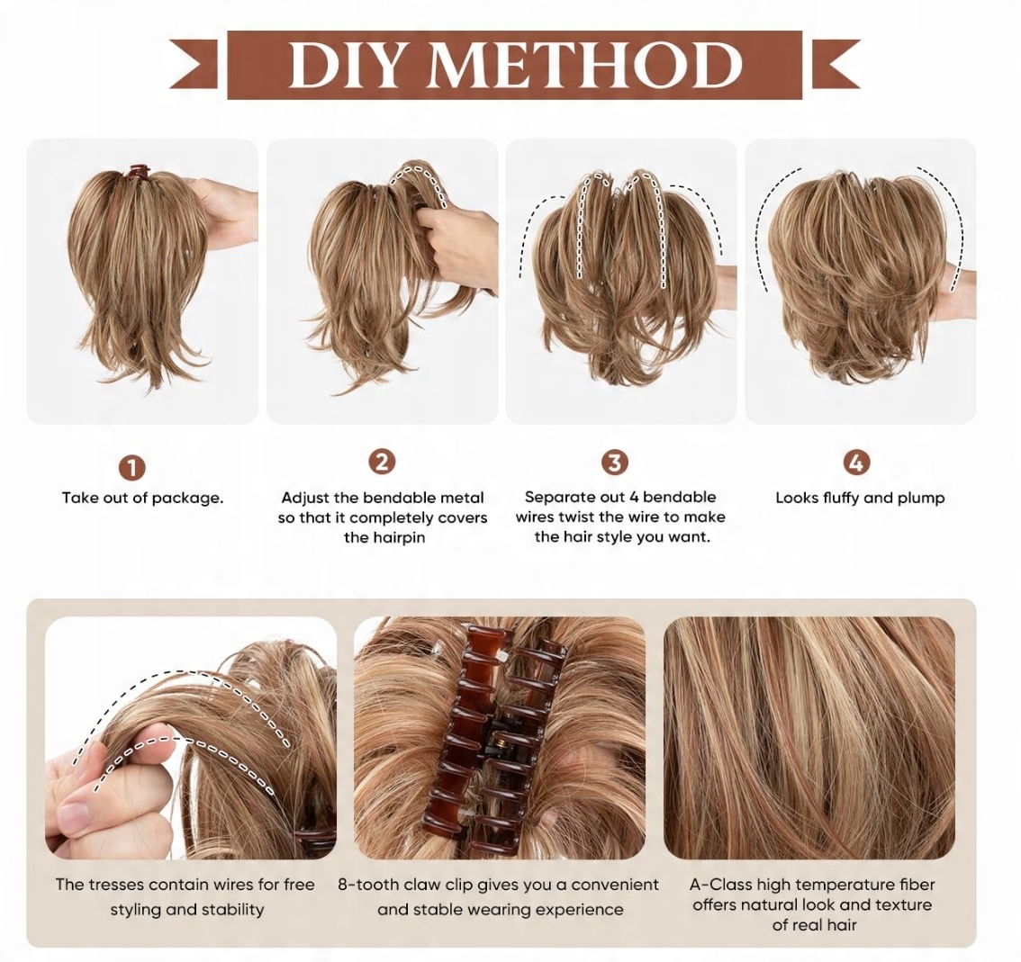【Измените свой образ за считанные секунды】Все внутренние провода по умолчанию прямые; Чтобы внести изменения в парик, просто согните проволоку до желаемой формы.