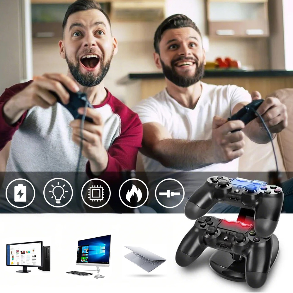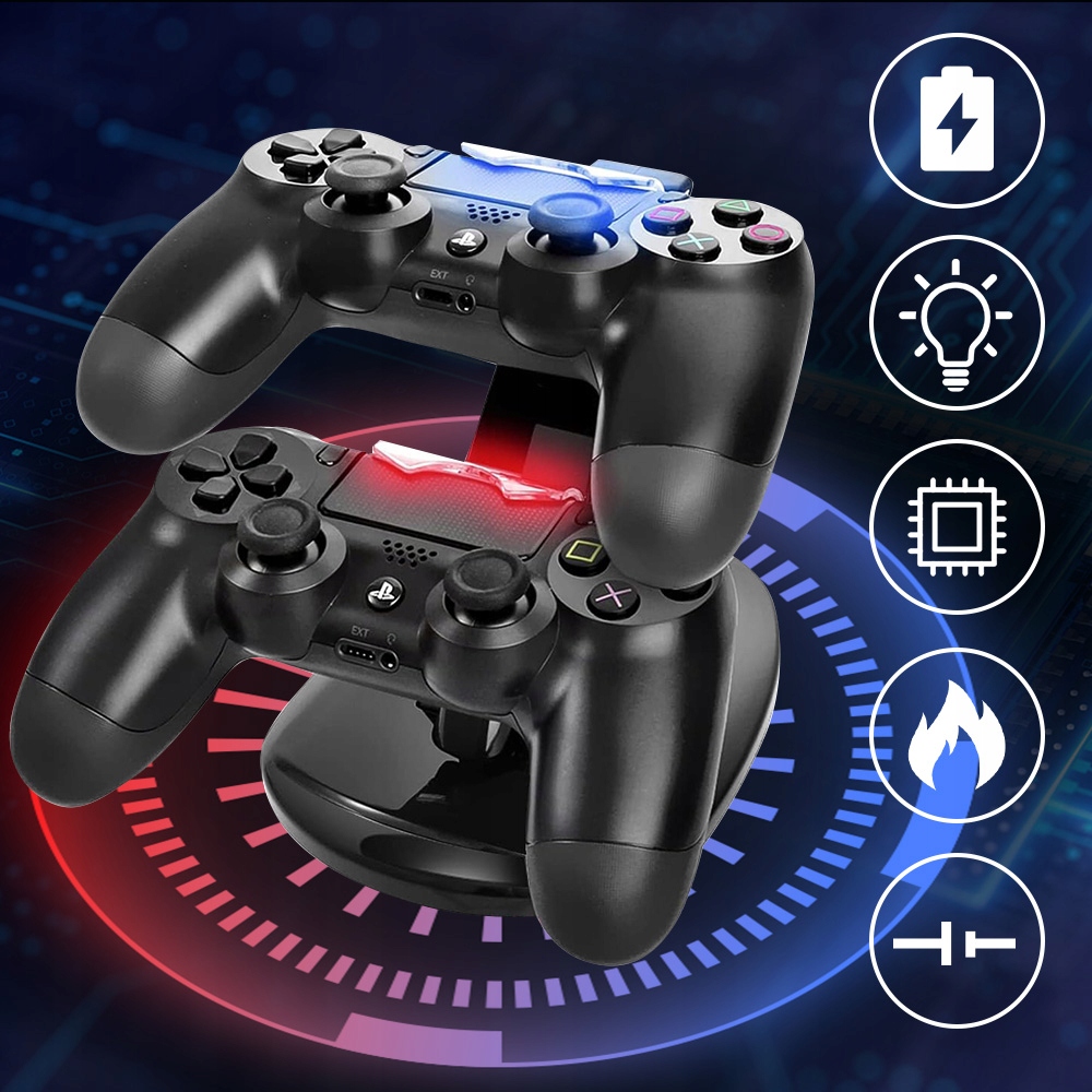 Возможность одновременной зарядки - Держите батарею контроллера заряженной и готовой к использованию. Зарядная станция PS4 с 2 возможностями может заряжать два контроллера. 2 часа для одного полностью заряженного контроллера и 4 часа для одновременной зарядки двух контроллеров