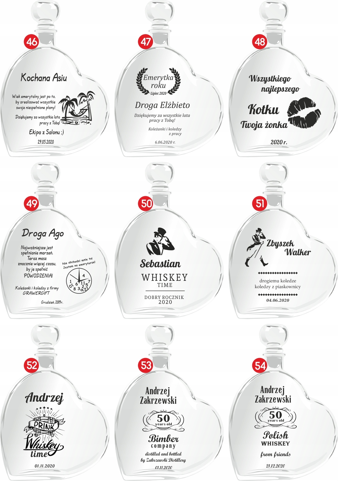 Тексты и варианты могут для изменения по своему усмотрению (тексты, отличные от наших вариантов, должны быть отправлены в редактируемой форме, например, ноутбука), а годовщины могут быть изменены. (в ответ на часто задаваемый вопрос - караф не заполнен ни одной жидкостью)