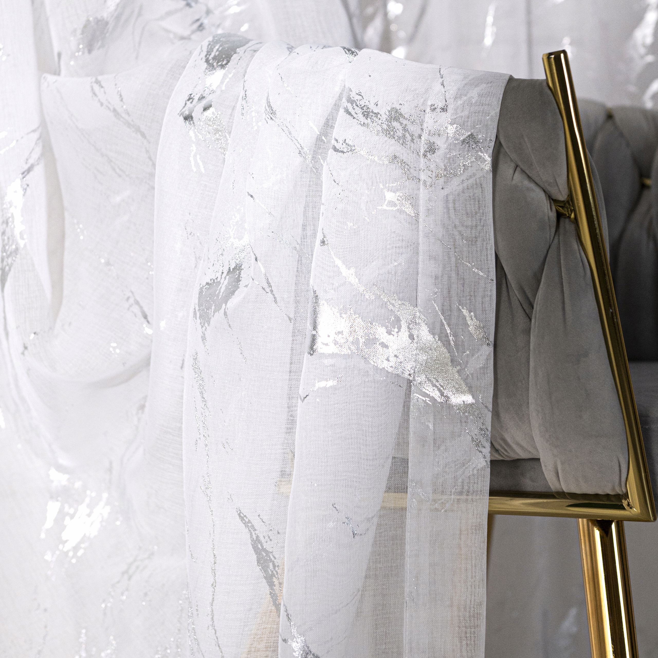 Занавес готовые на Etamin с принтом на царапинах мрамора серебра 140x250
