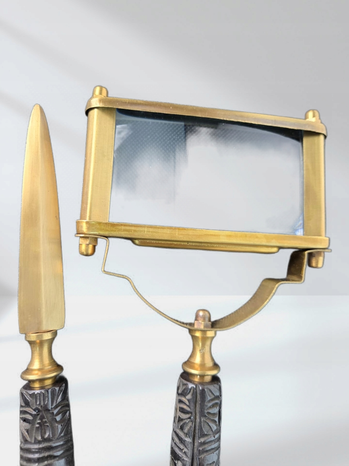Я предлагаю элегантный набор шкафа, состоящий из прямоугольного увеличительного стекла и ножа для букв, идеально подходящих для людей, которые ценят стиль и функциональность