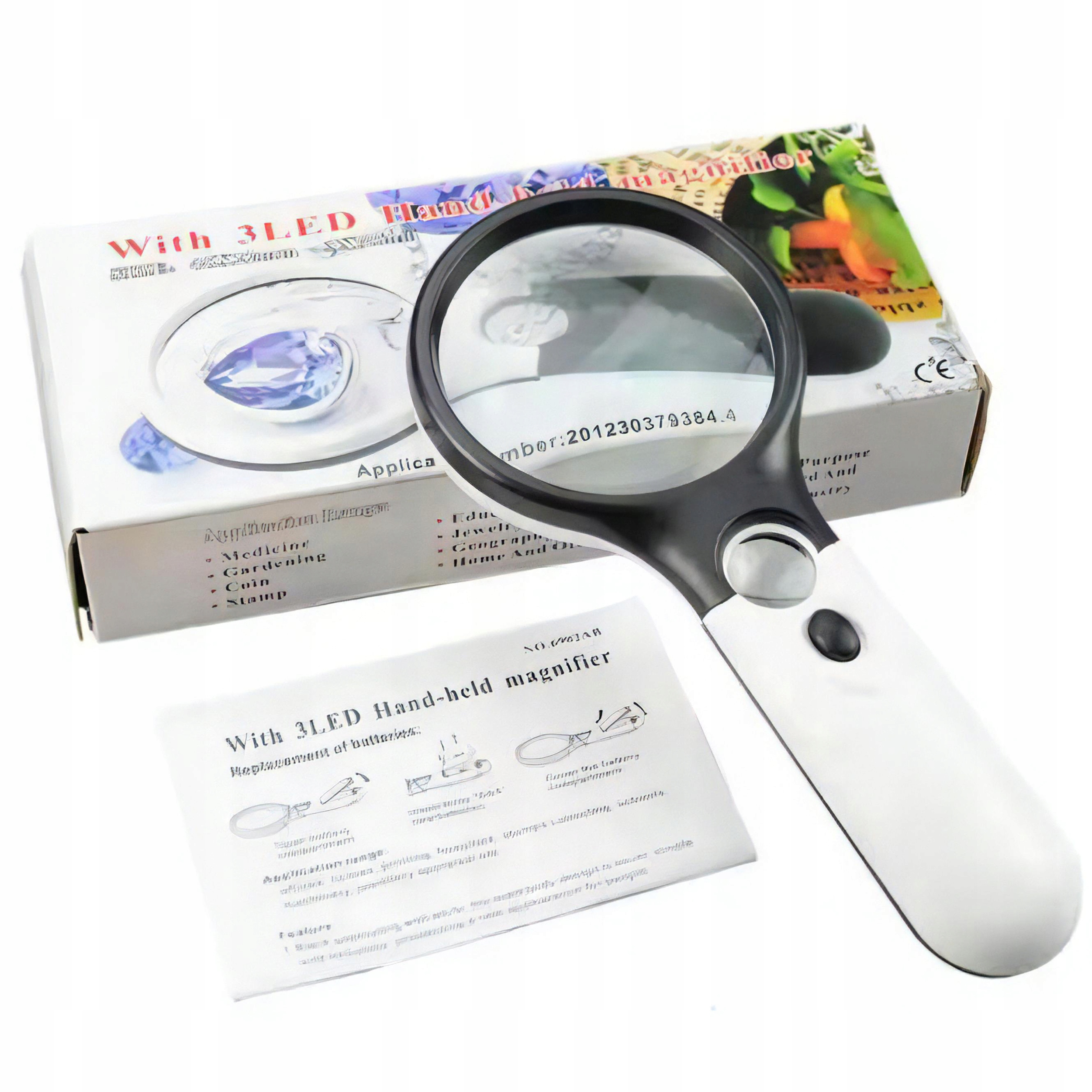Увеличительное увеличительное стекло для чтения 3x + 45x освещенное xl увеличение