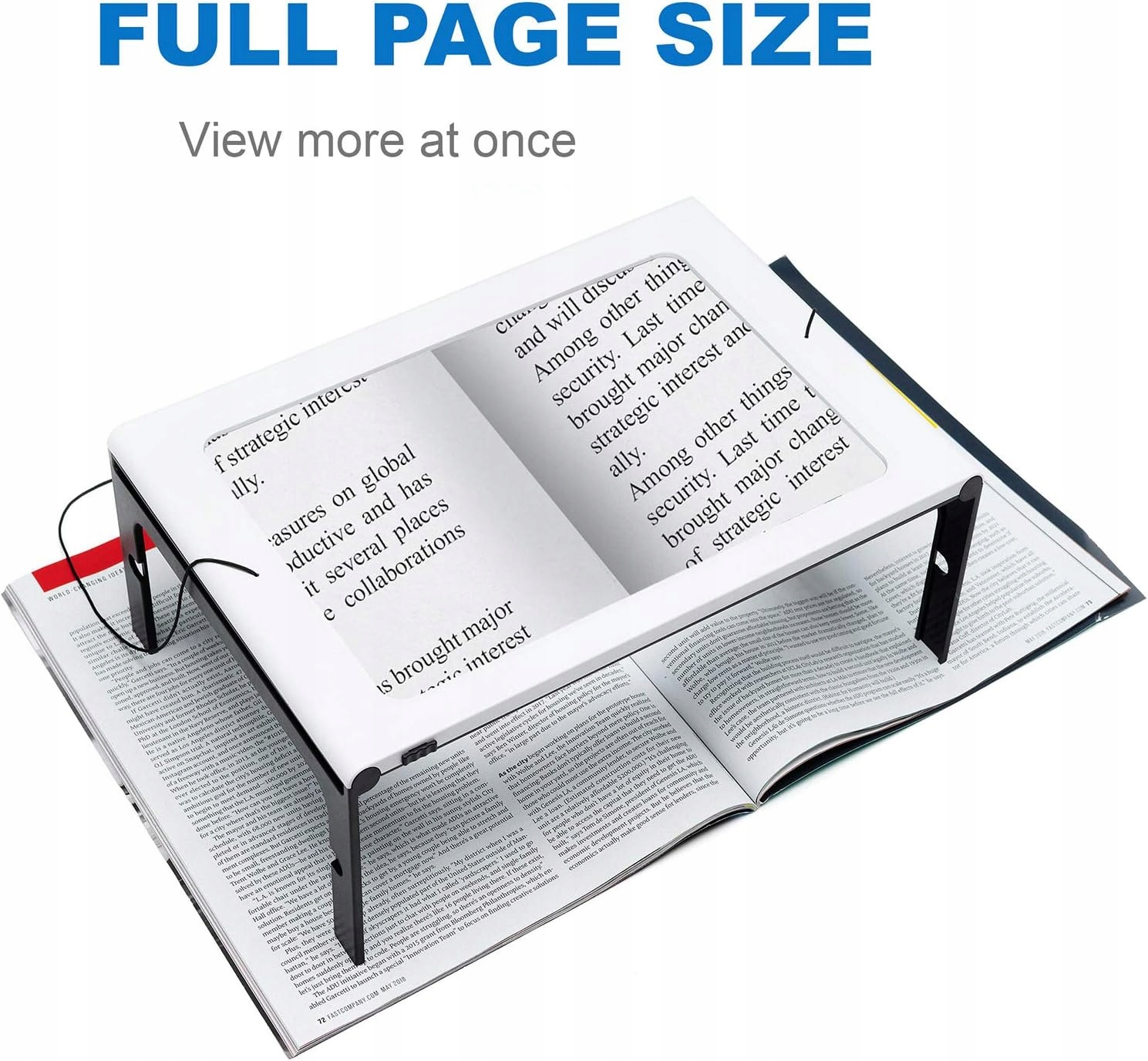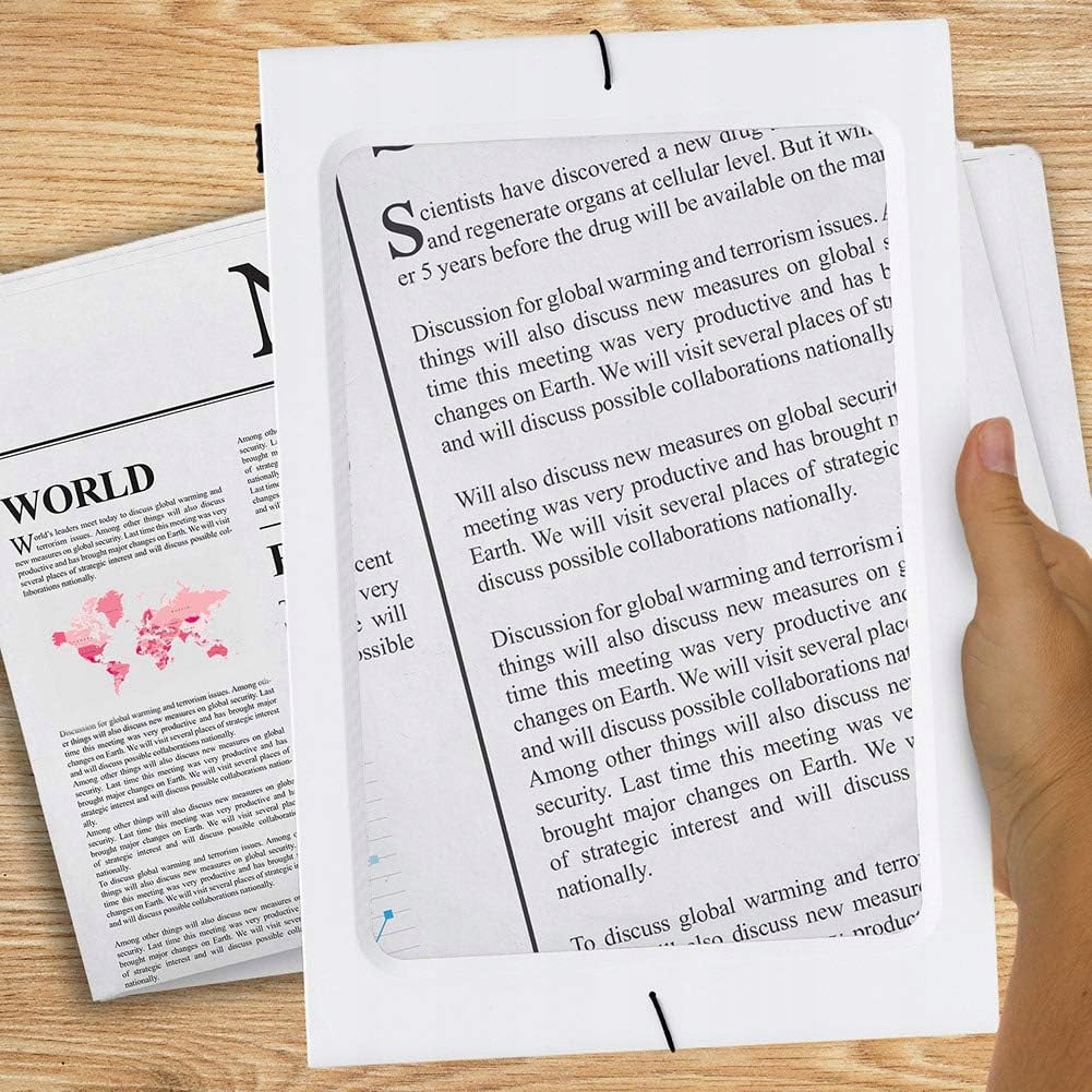 - Двукратная лупа формата А4 обеспечивает исключительно большое поле зрения, поэтому вы можете видеть всю страницу сразу. Отлично подходит для чтения книг, журналов, газет, документов, карт и т. д.