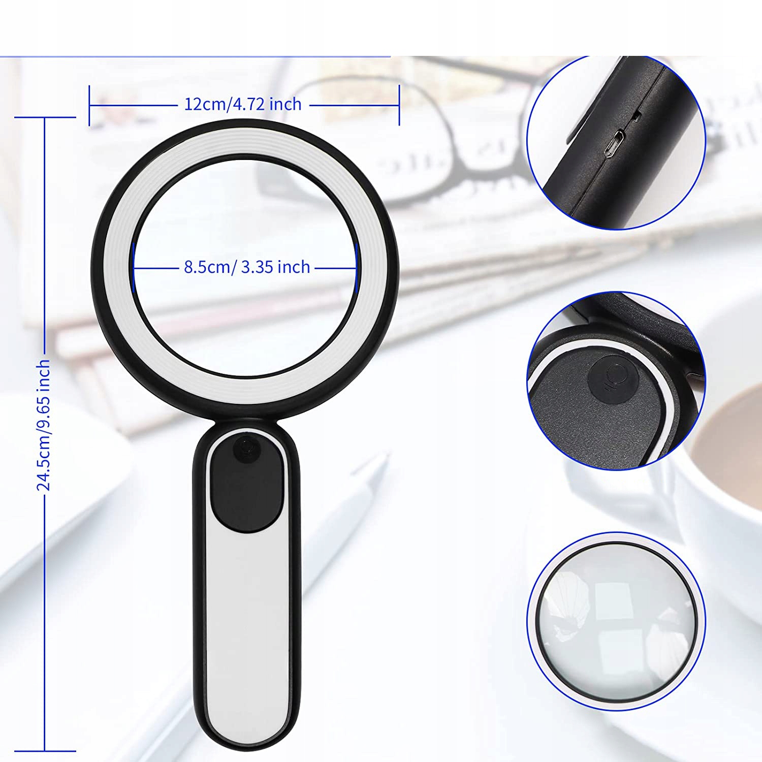 【Уникальный дизайн】: это увеличительное стекло с подсветкой соответствует концепции эргономичного дизайна. По сравнению с традиционными громоздкими лупами наша лупа легче и весит всего две трети своего веса, что может надолго уменьшить боль при чтении, подходит для пожилых людей и детей. Ручная лупа диаметром 12 см обеспечивает хорошее освещение, а большая рамка увеличивает дальность чтения и поле зрения.