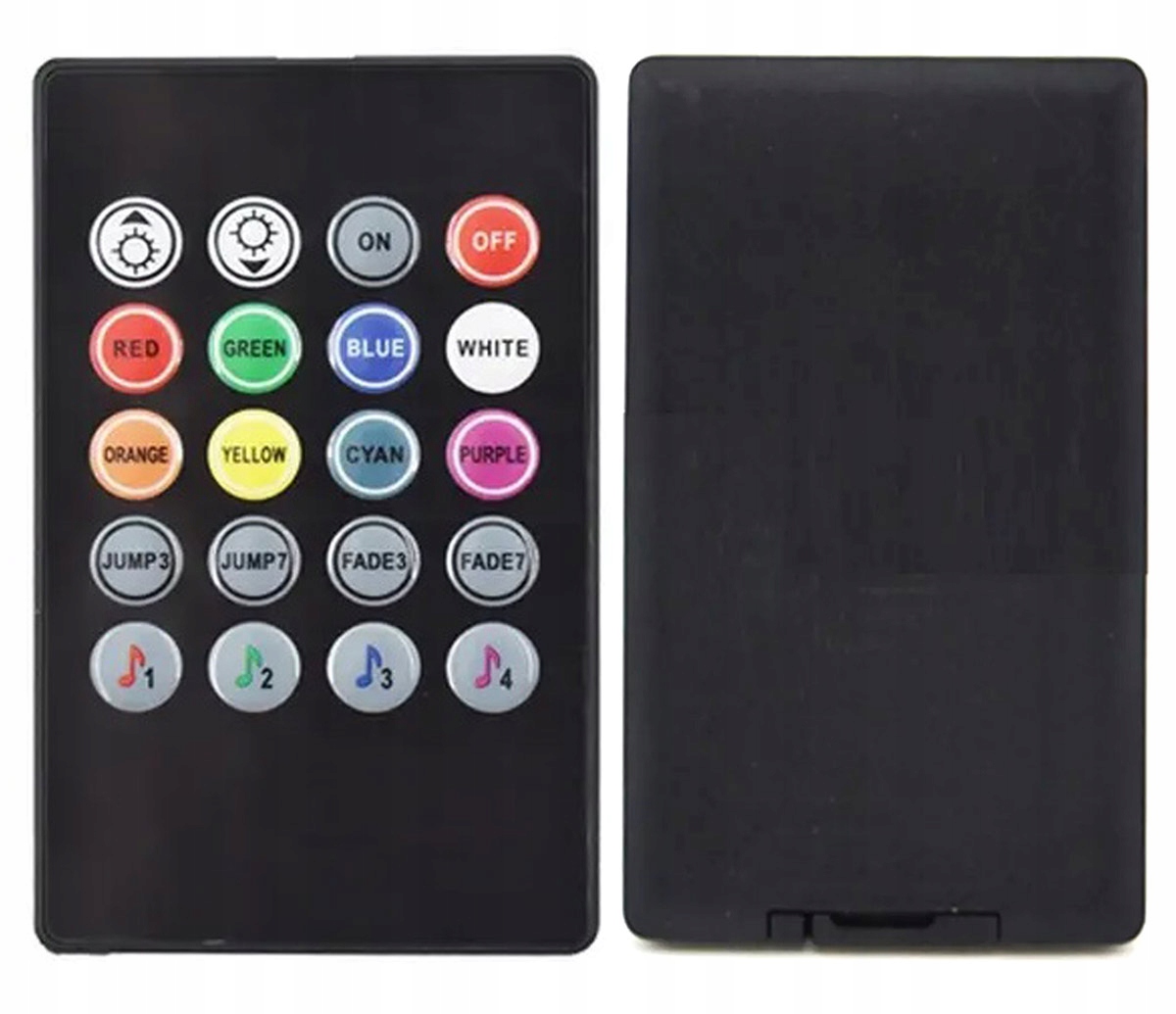 Комплект светодиодного освещения RGB для использования в салоне автомобиля. Чрезвычайно прост в установке благодаря использованию самоклеящихся светодиодных лент на двустороннем скотче 3М. Новая модель также оснащена функцией освещения в ритме музыки. Покрытие полосок силиконовым покрытием делает их водонепроницаемыми! Полосы можно установить в любом месте автомобиля благодаря использованию длинных кабелей между полосами. Удобное питание напрямую от прикуривателя автомобиля – 12В. Цветом, яркостью и режимами освещения можно управлять напрямую с помощью прилагаемого пульта дистанционного управления или даже с помощью телефона, оснащенного портом IrDA! Его можно быстро и легко выключить благодаря специальной кнопке включения/выключения с подсветкой на вилке прикуривателя 12 В.