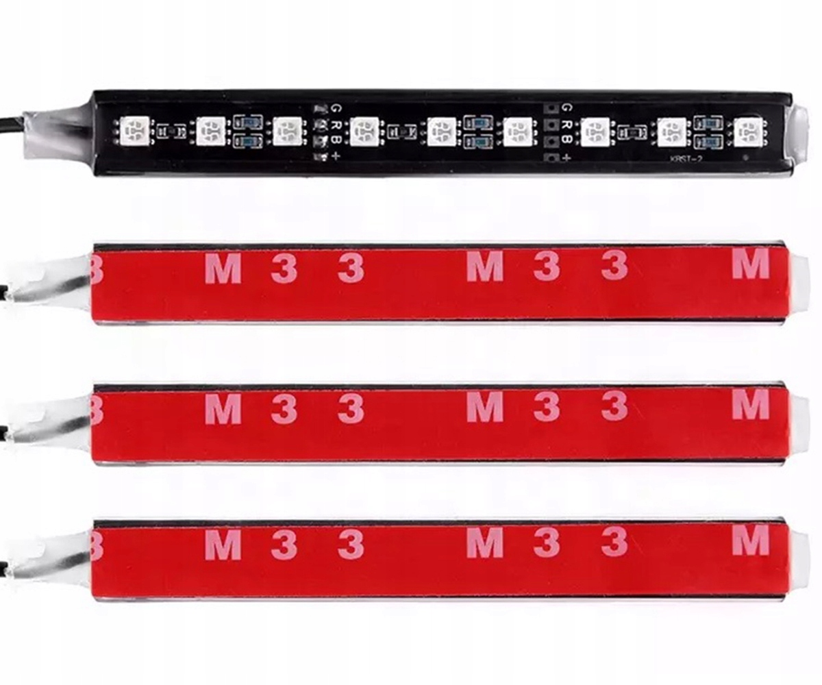 - 4 самоклеящиеся силиконовые и водонепроницаемые светодиодные ленты.