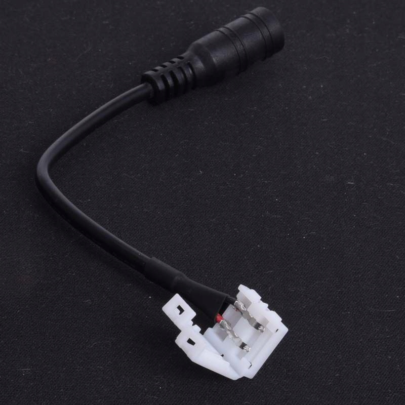 Профессиональный 2-контактный разъем с кабелем. Этот разъем используется для подключения светодиодных лент шириной 10 мм к блоку питания. Разъемы можно использовать в низковольтных установках с максимальным током 3А и напряжением 48В. С одной стороны расположена 2-контактная клеммная колодка для подключения светодиодной ленты, с другой — гнездо постоянного тока 2,1/5,5 мм.