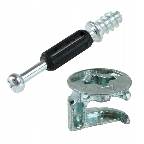 Соединитель мебельный эксцентриковый предназначен для сборки мебели (корпуса, корпуса). Этот разъем характеризуется невидимым соединением, которое невозможно увидеть снаружи мебели – это чистое соединение, видимое только внутри мебели. Соединение позволяет легко собирать и разбирать мебель – если ее необходимо переместить. Разъем состоит из крючка — штифта, ввинчиваемого крестовой отверткой непосредственно в отверстие в доске или дереве, — и эксцентрика (круглого элемента), служащего для затягивания соединения. Соединение используется мебельной промышленностью Польши и является одним из самых популярных решений, используемых производителями мебели.