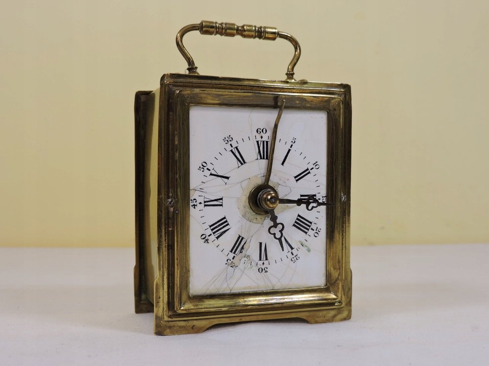Zegar Kominkowy KARECIAK MOSIEZNY Budzik Francuski BREVETE Porcelanowa