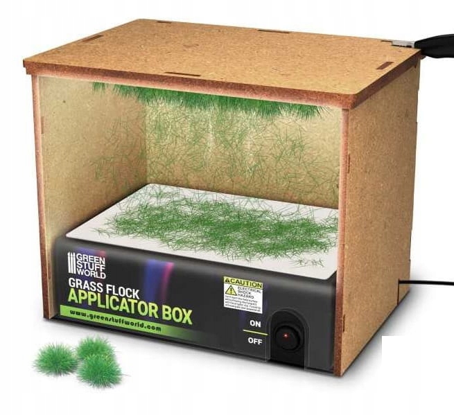 Коробка с Green Stuff World Applocator Flock Applocator оснащена батареей 9 В (не включенной в набор), которая обеспечивает статический электрический ток для зарядки стадных волокон, вызывая их вертикальное расположение на коврике, бумаге или другом ремесленные материалы, дающие реалистичный 3D -эффект. Коробка с аппликатором для пузырьков травы является эффективной и обеспечивает отличные результаты, является беспроводной и требует всего 9 В, поэтому не требуется ненужных кабелей. Легкий и защищенный дизайн обеспечивает более безопасную и более чистую работу на рабочем месте