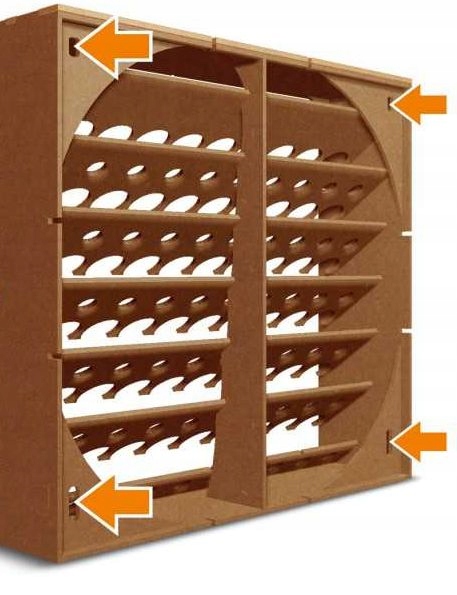 позволяет хранить бутылки вверх ногами. Содержит разъемы для подключения многих стоек. Возможность прикручивания к стене