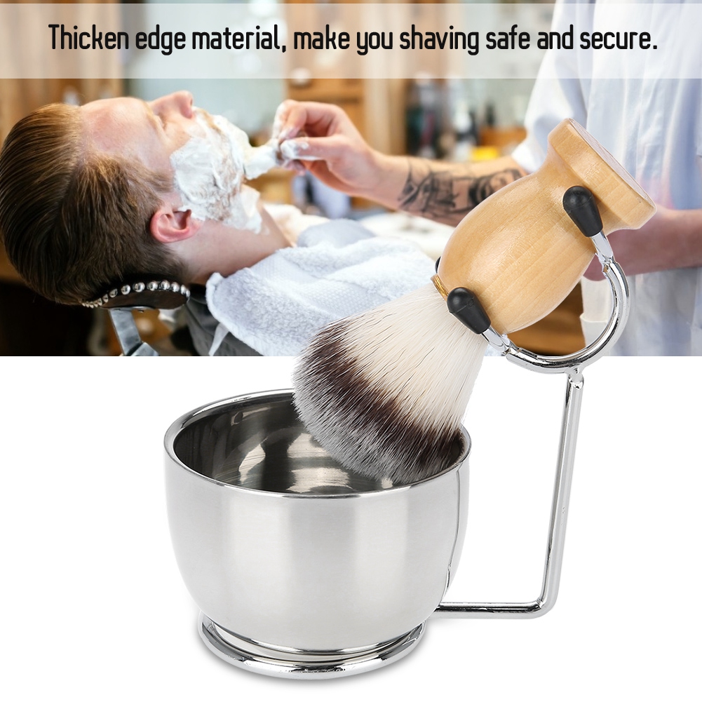 - В этот набор для бритья входят помазок для бороды, мыльница и подставка для щеток. Чаша изготовлена из нержавеющей стали, прочная и практичная. С подставкой удобно хранить миску и щетку и поддерживать их в чистоте.
