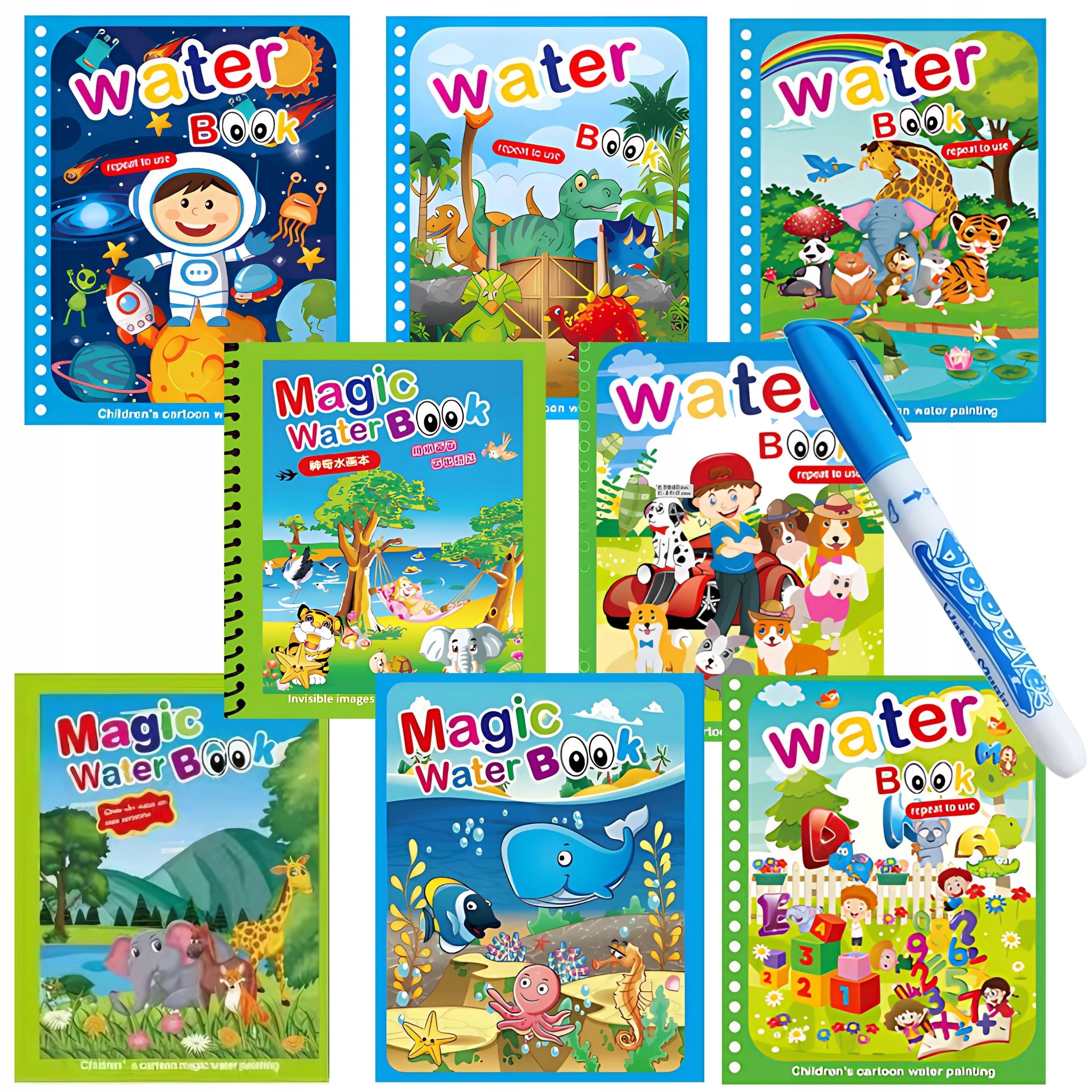 ZESTAW KOLOROWANEK WODNYCH WIELORAZOWEGO UŻYTKU Z PISAKIEM WODNYM 8x SZTUK