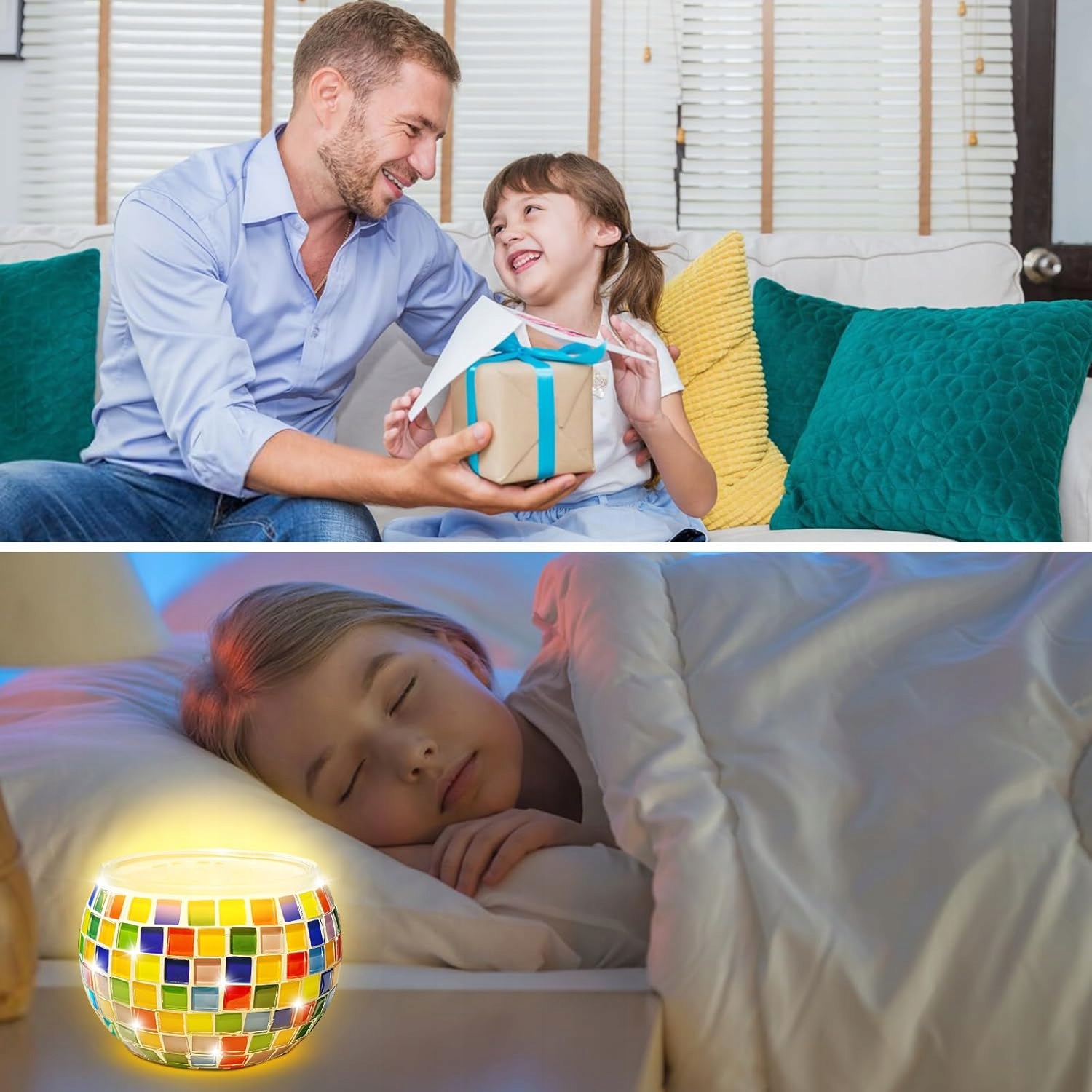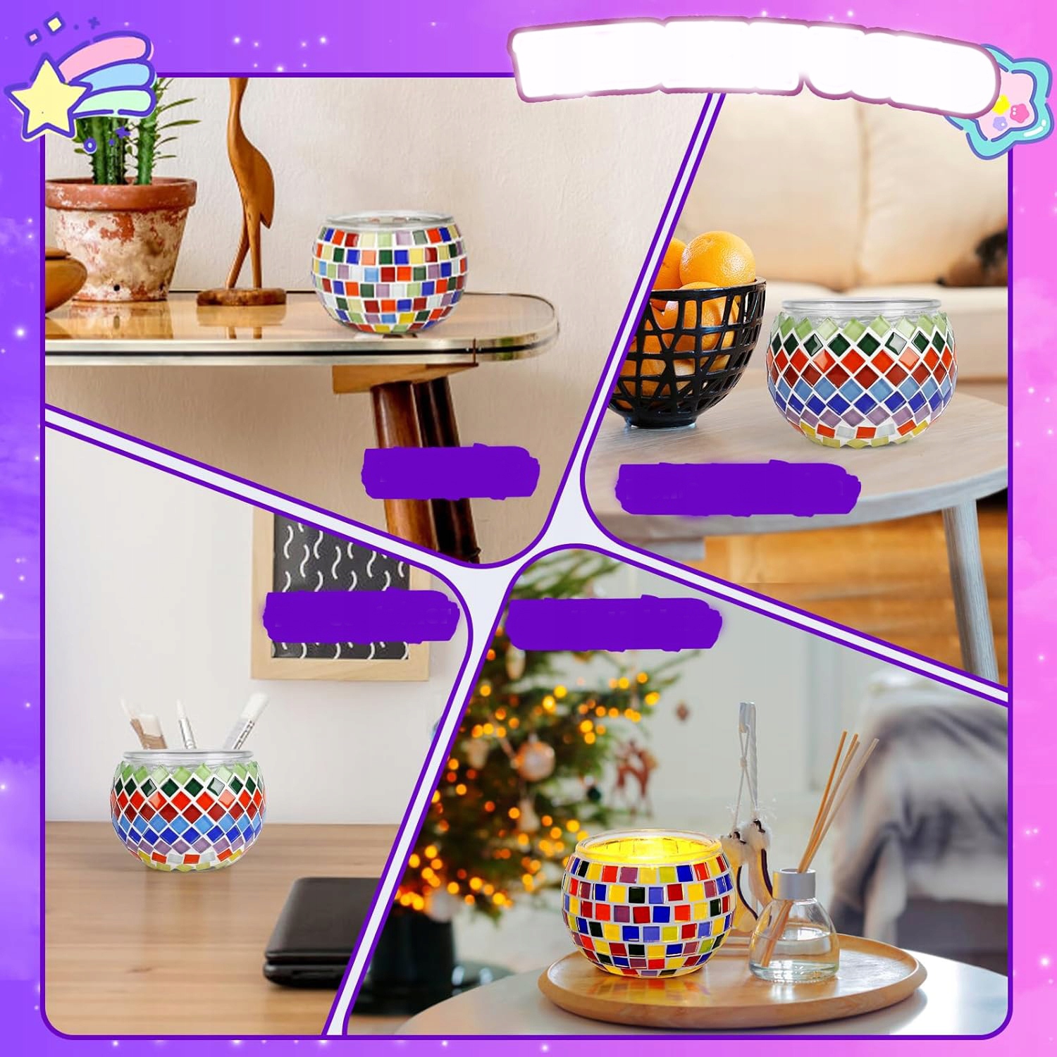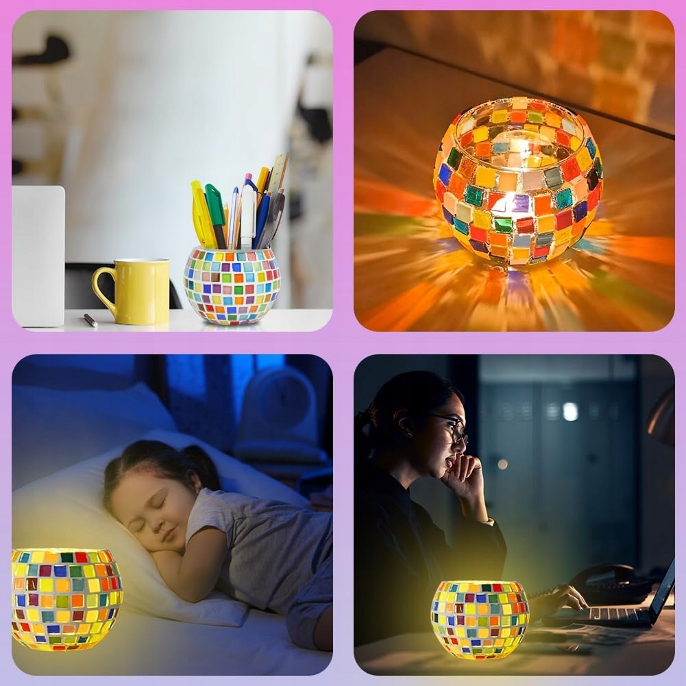 ZESTAW MOZAIKA SZKLANA ŚWIECZNIK WOTYWNY RĘCZNIE ROBIONA KOLOROWE ŚWIECZNIK