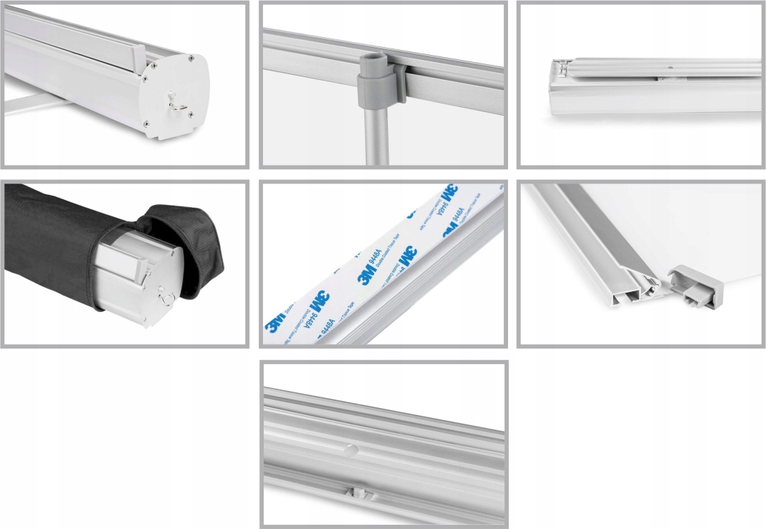 Стандартная кассетная модель, измеряемая 100x200 см, из -за веса 3,5 килограмма, характеризуется исключительной стабильностью, нет необходимости устанавливать дополнительные ноги, поддерживая структуру стенда. В этом варианте кассета изготовлена из анодированного алюминия - материал, подверженный этому процессу, становится долговечным и устойчивым к коррозии.
