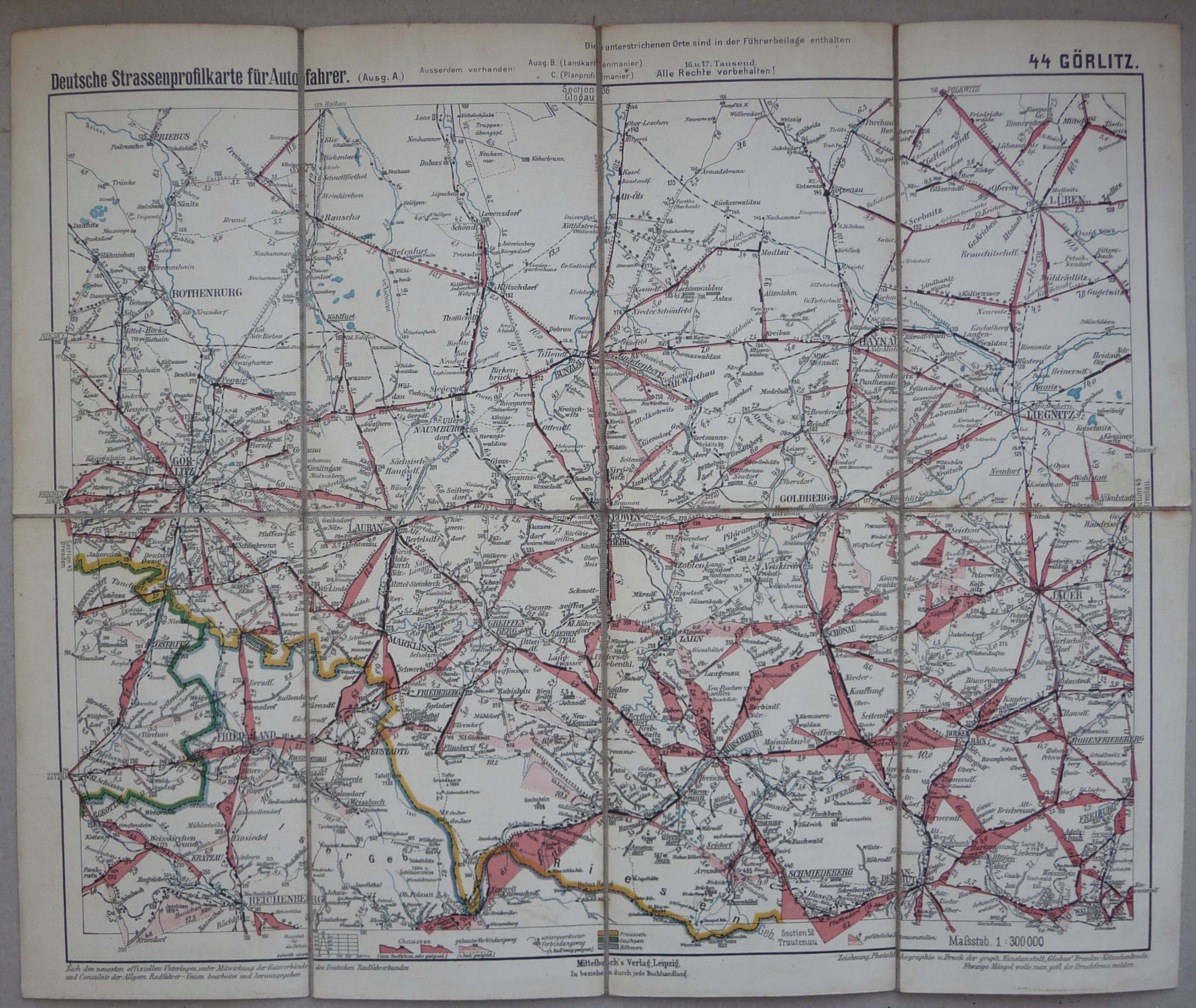 ZGORZELEC; LEGNICA; JAWOR; MAPA DROGOWA, ark. 44 GÖRLITZ; ok. 1930