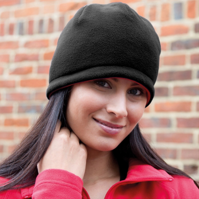 Шапка двухслойная флисовая, ЧЁРНО-КРАСНАЯ