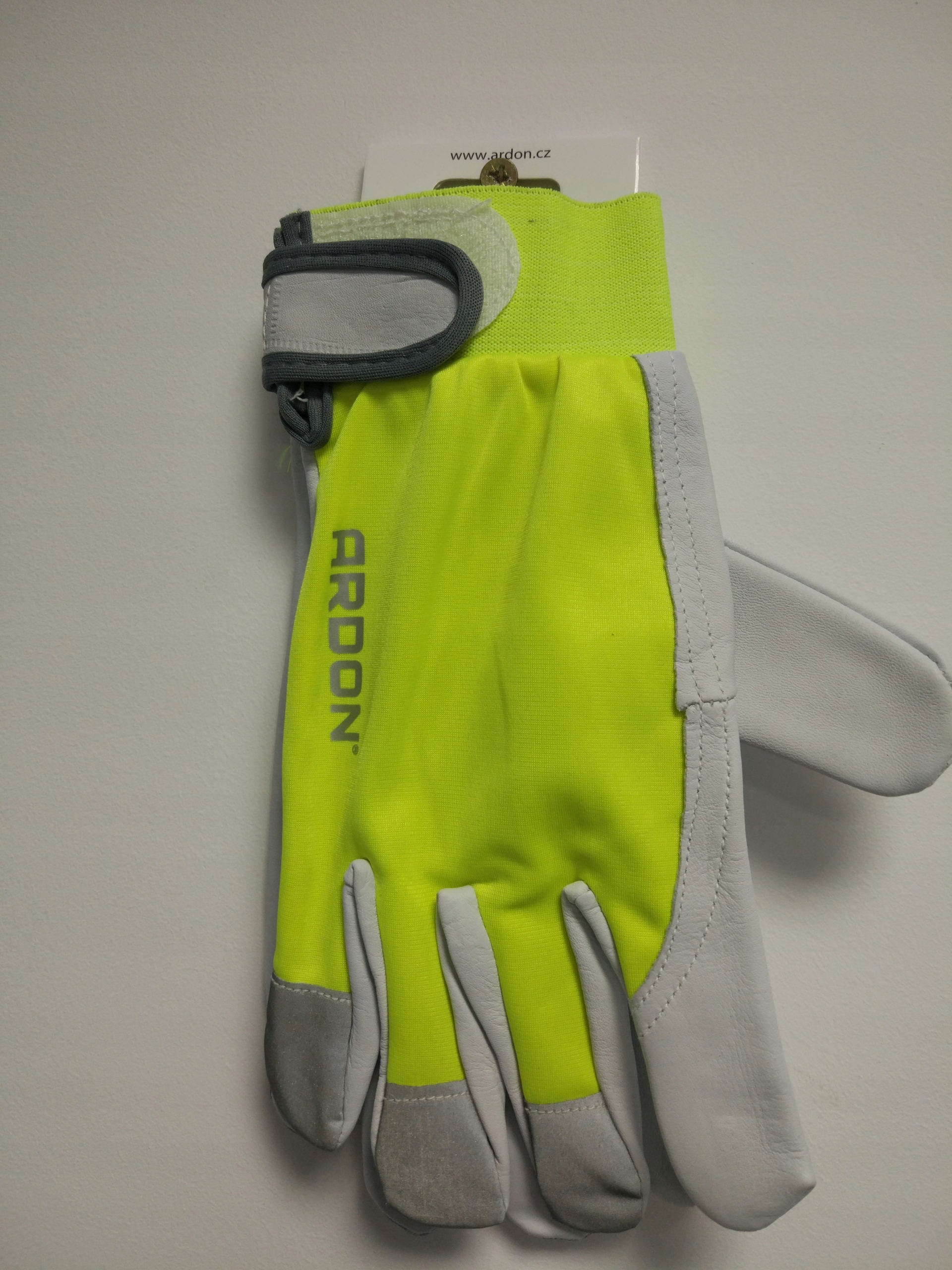 Верх изготовлен из эластичная ткань Полиэстер флуоресцентного цвета - желтый, благодаря чему перчатки идеально прилегают к руке.